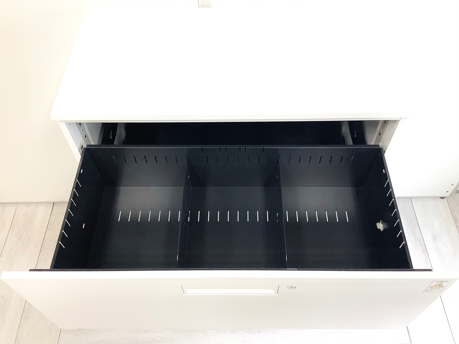 - 両開きタイプは扉が180度開き、通路の邪魔になりません。ラテラルタイプは引出しが限界まで出せ、出し入れ楽々。
