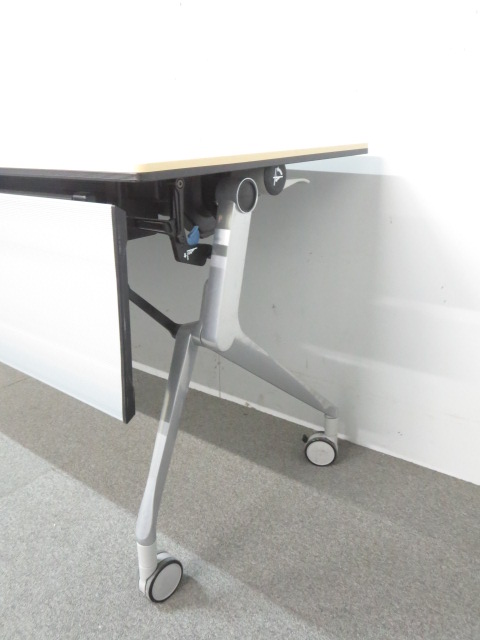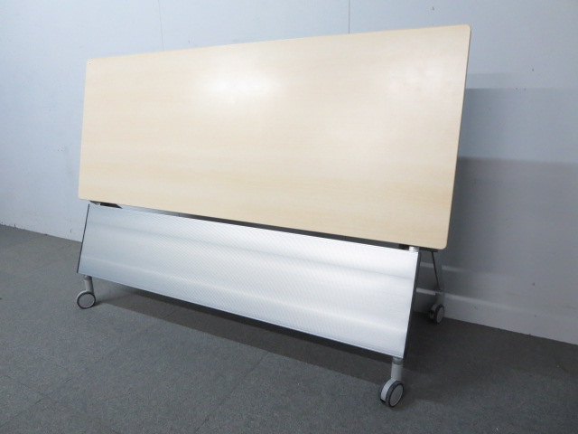 【KS】【スタイリッシュなデザイン!】■オカムラ サイドフォールドテーブル W1800×D600mm 幕板パネル付 ■人気の木目タイプ!ナチュラルカラー!- 茨城南店