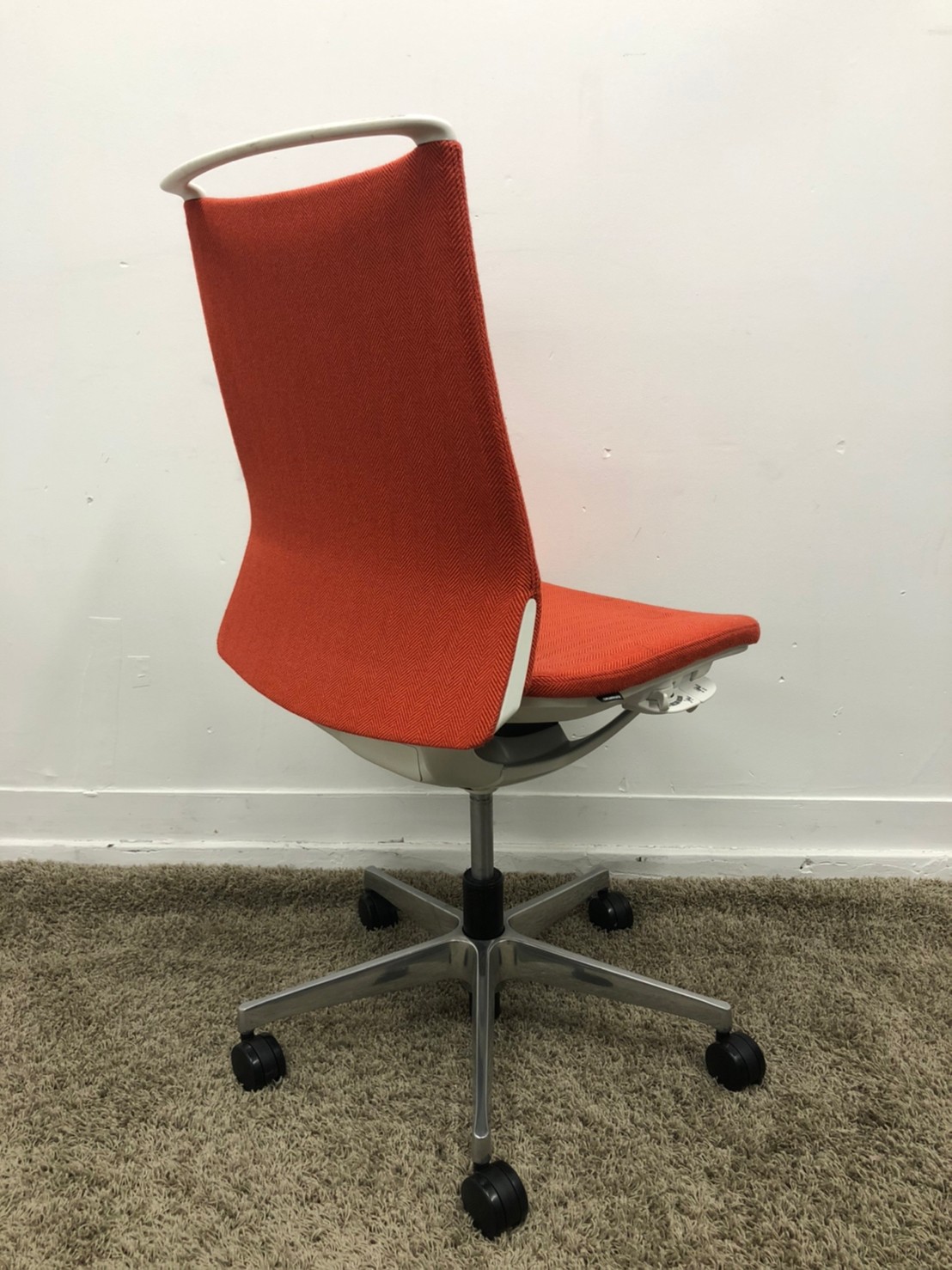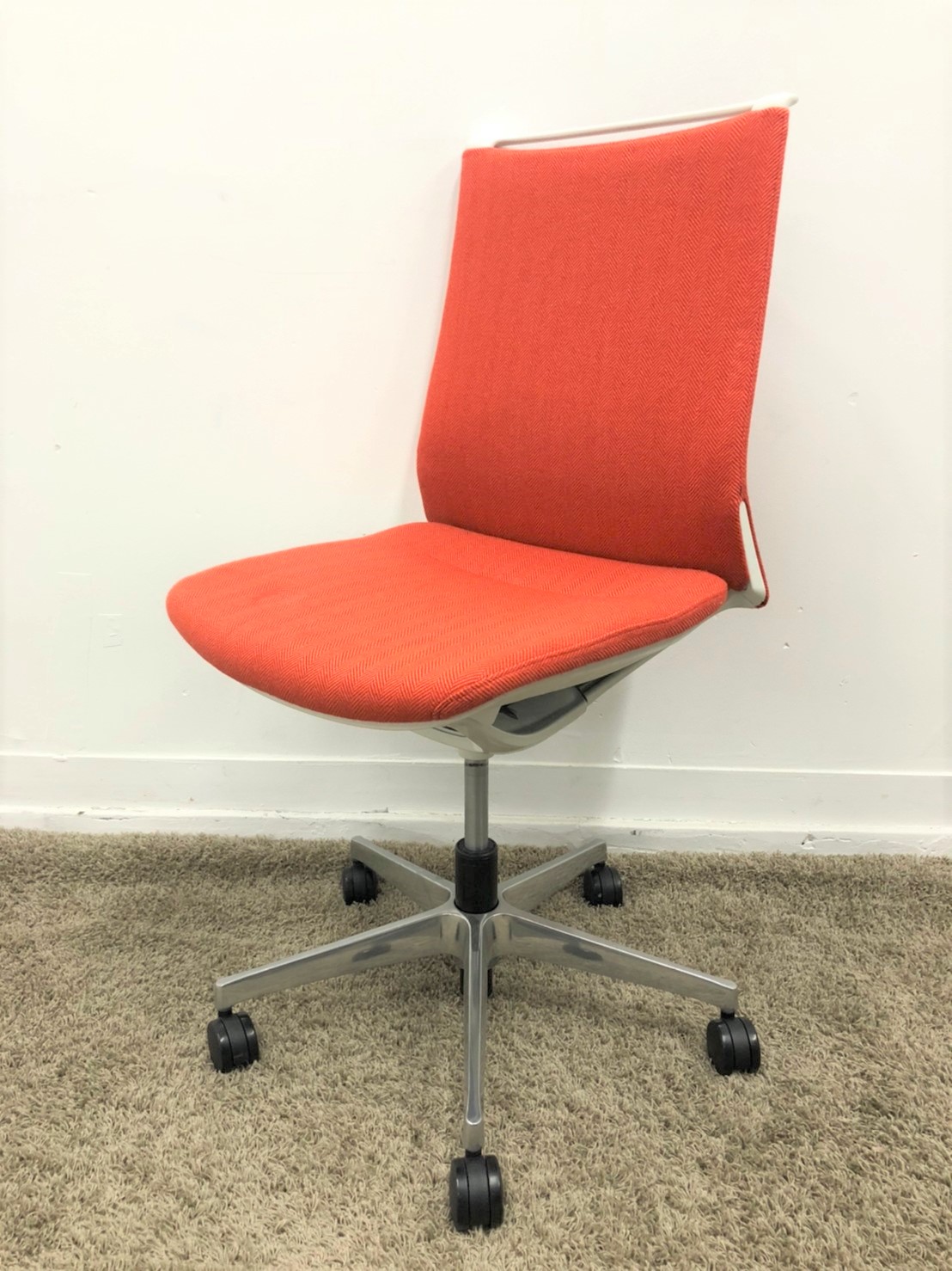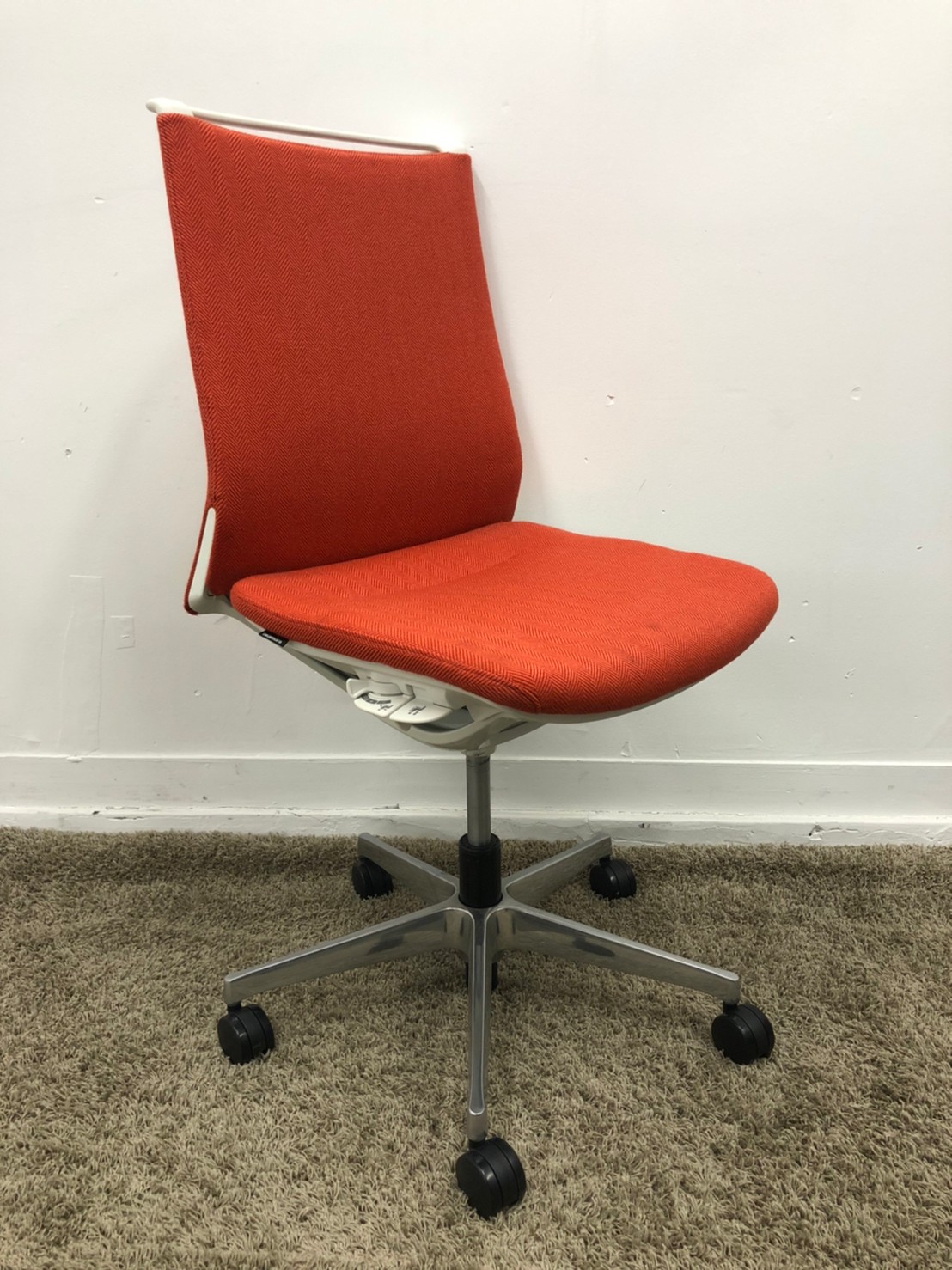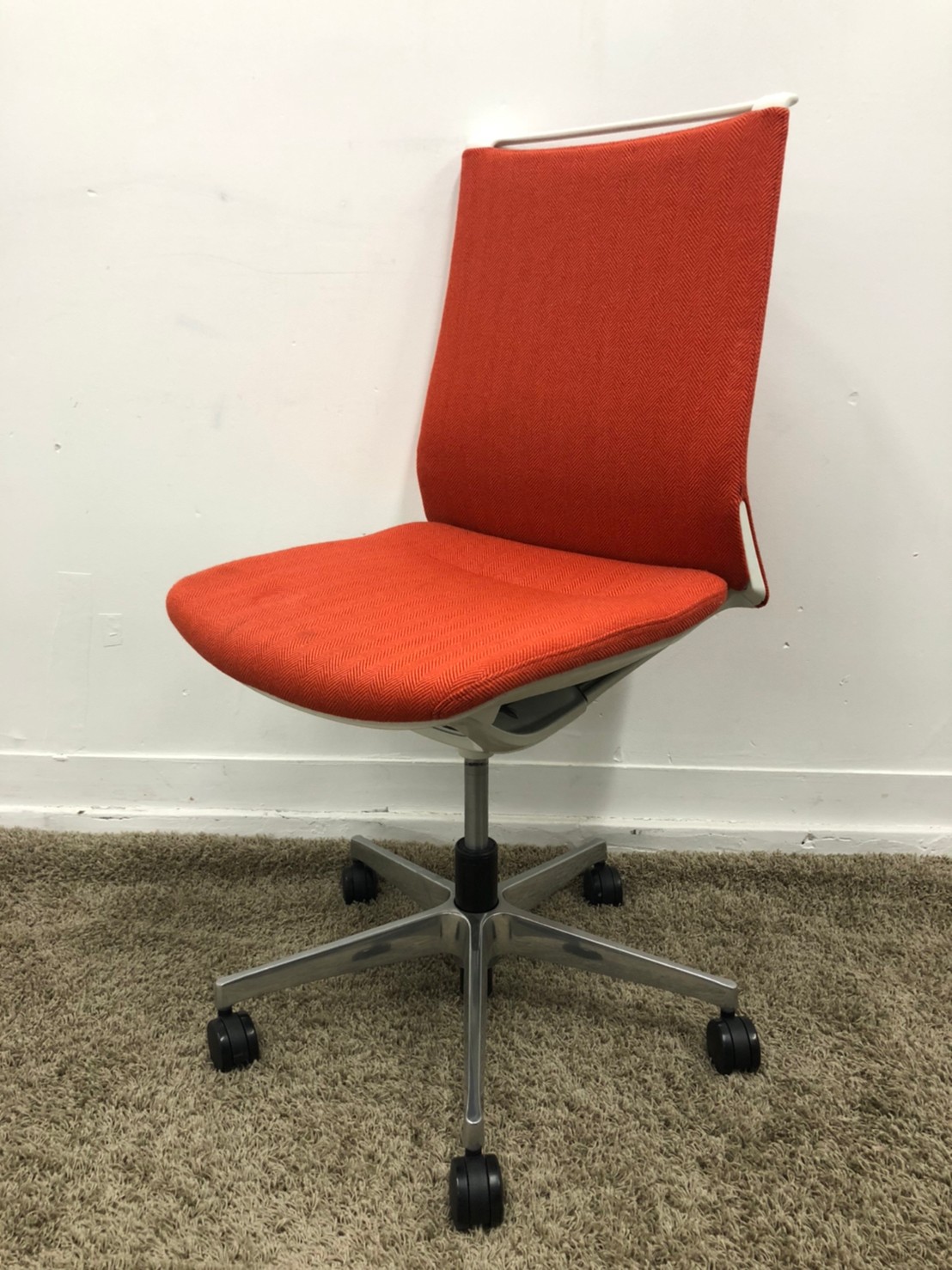 【KS】☆2018年製!【モダンな空間を演出!】■オカムラ製 モードチェア(mode) オレンジレッド【グッドデザイン賞受賞!】在庫入替 松- 茨城南店