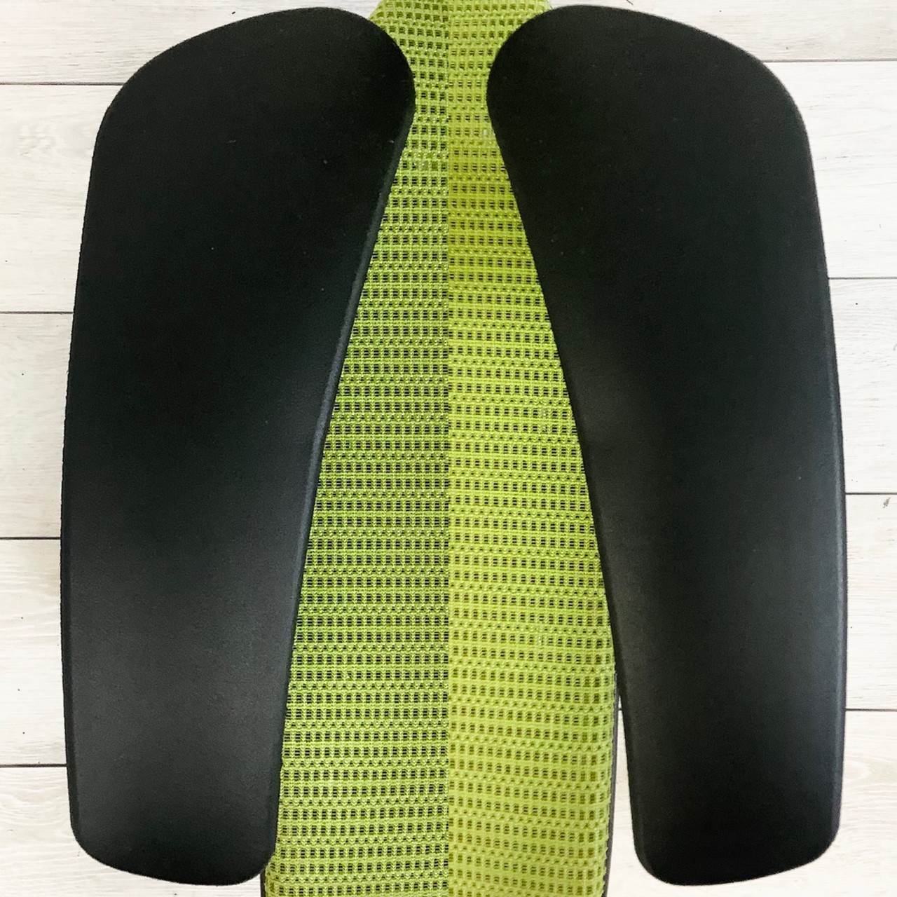 - アームパッドは90°(内60°:2段階、外30°)の角度調節が可能。コンピュータ操作時などに肘全体をやさしくサポートします。