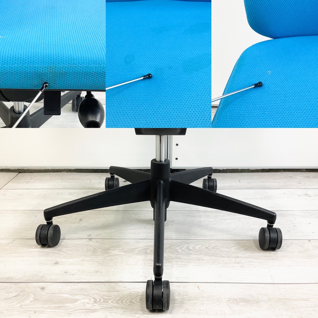 - 不具合多数そのチェアの本来の効用を果たすための機能に不具合ある。(例、オフィスチェアの上下昇降キャスター付きミーティングチェアのキャスター使用不可のような不 具合)