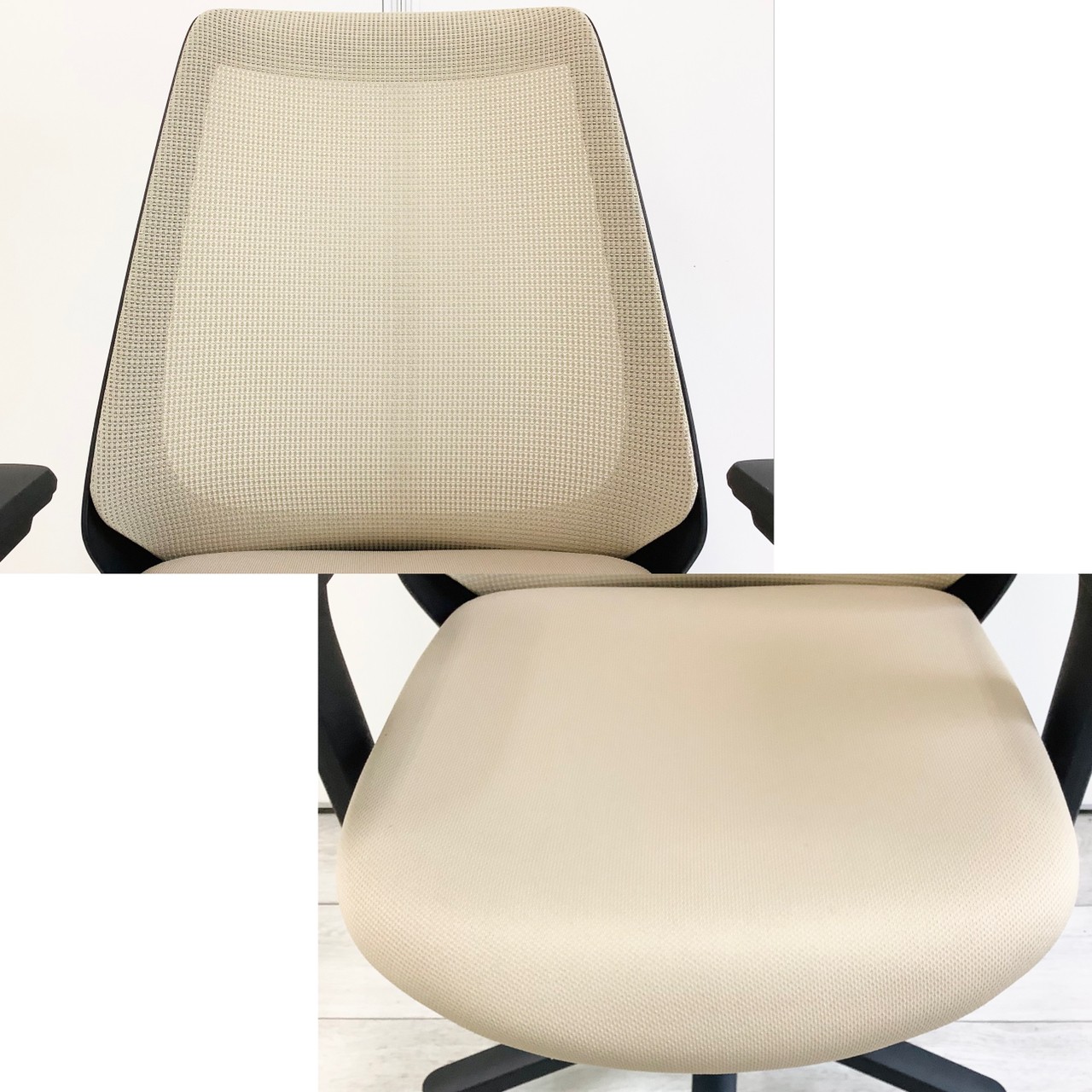 メッシュ素材 - 高伸縮性エラストマー繊維採用で、身体を包み込む座り心地と高い耐久性があります。透過性もあり、オールシーズン快適です。