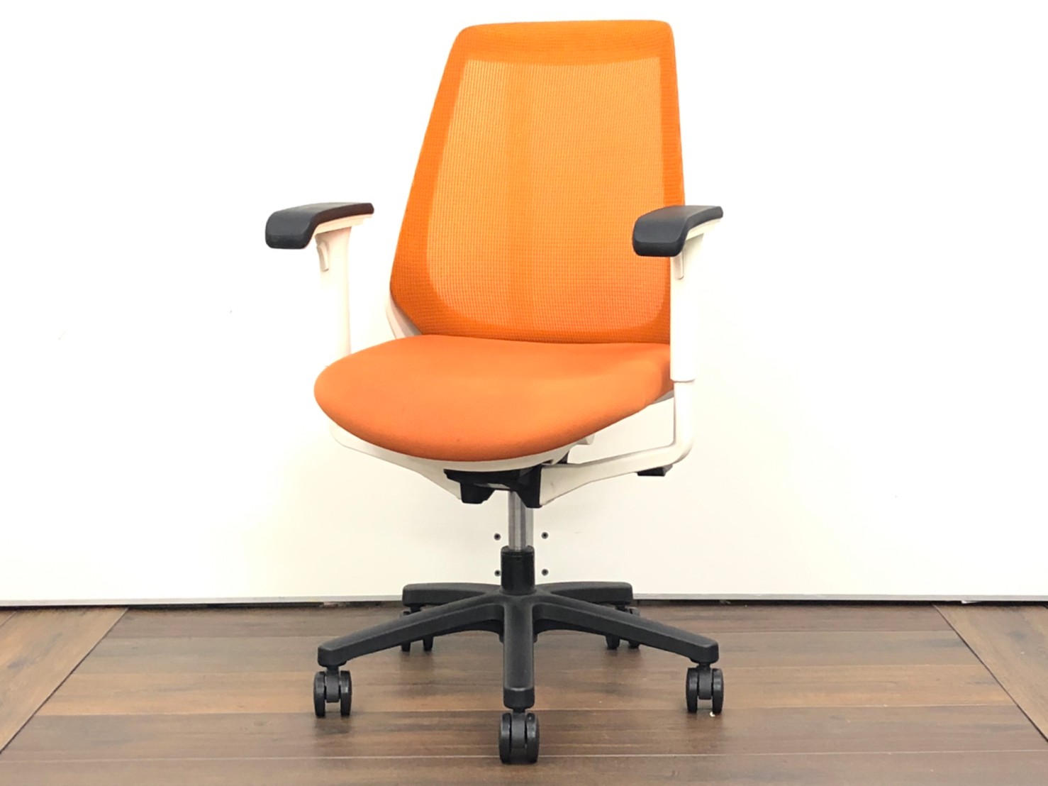 入替セール品につきお値下げ!【フレッシュなオフィスになること間違いなし!人気のメッシュチェア】■イトーキ(ITOKI) ノナ(nona)チェア 背面メッシュ ■サークル肘 ■アンバーオレンジ 【デスクに納まりの良いコンパクト設計】
