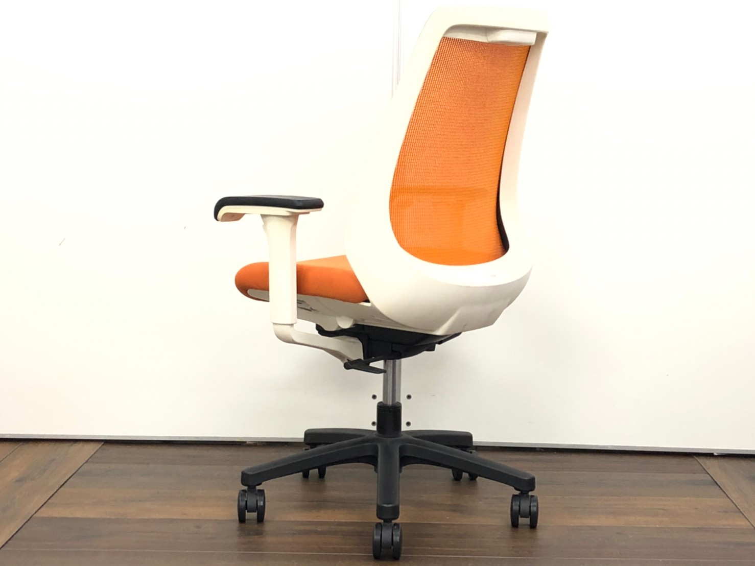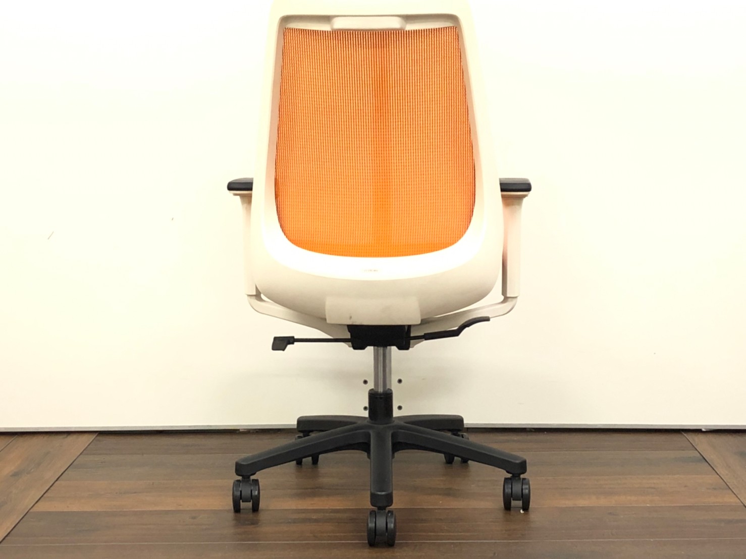 【座りやすくてコンパクト!肩回りが動かしやすい背面メッシュの人気チェア!】■イトーキ(ITOKI) ノナ(nona)チェア ハイバック 肘付き ■サークル肘 ■背面メッシュ ■アンバーオレンジ × ホワイトシェル