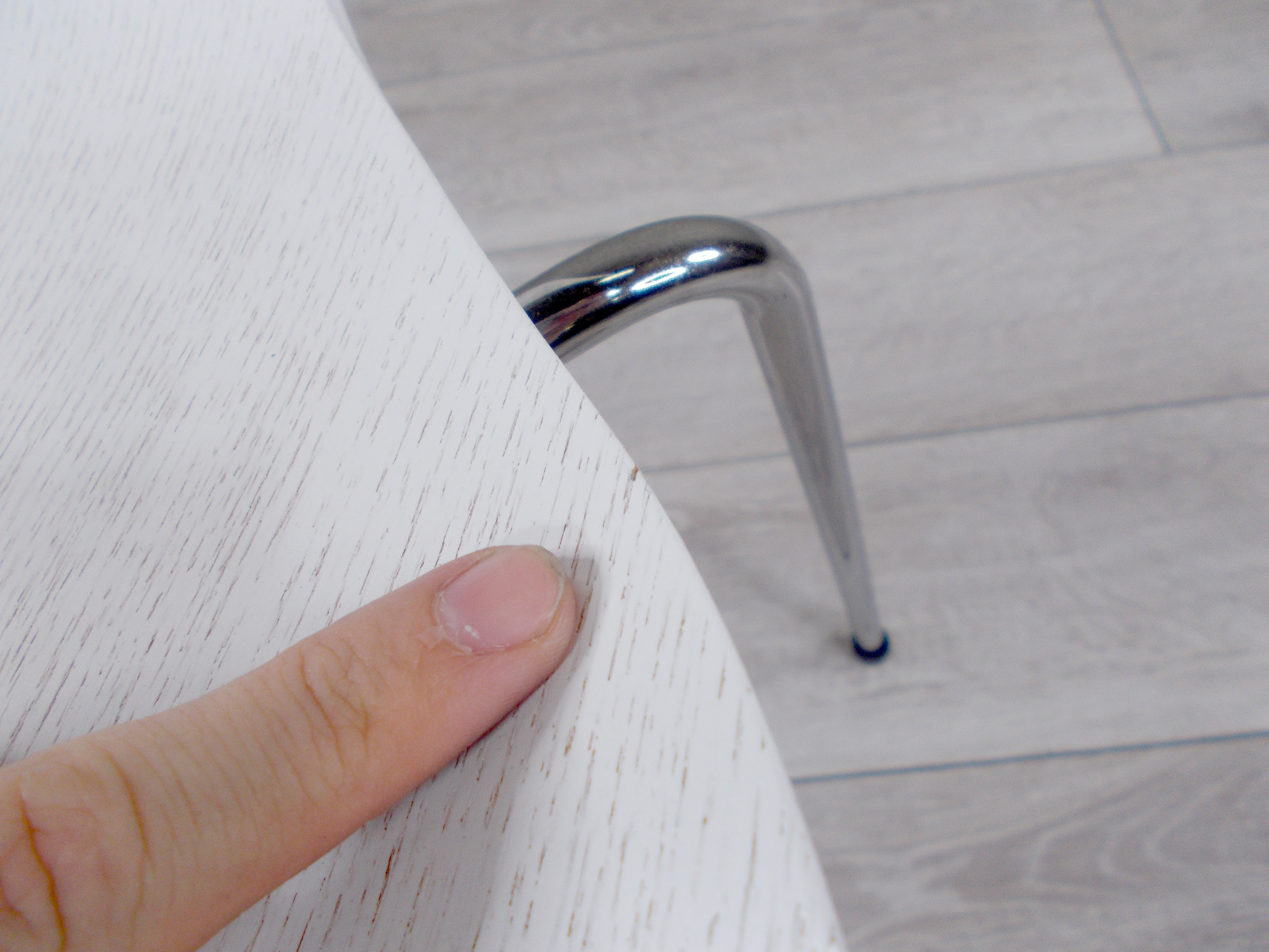 - かなり強い濃い黄ばみ・変色が商品全体にある。(例、座面・背もたれ、脚部等にある。)