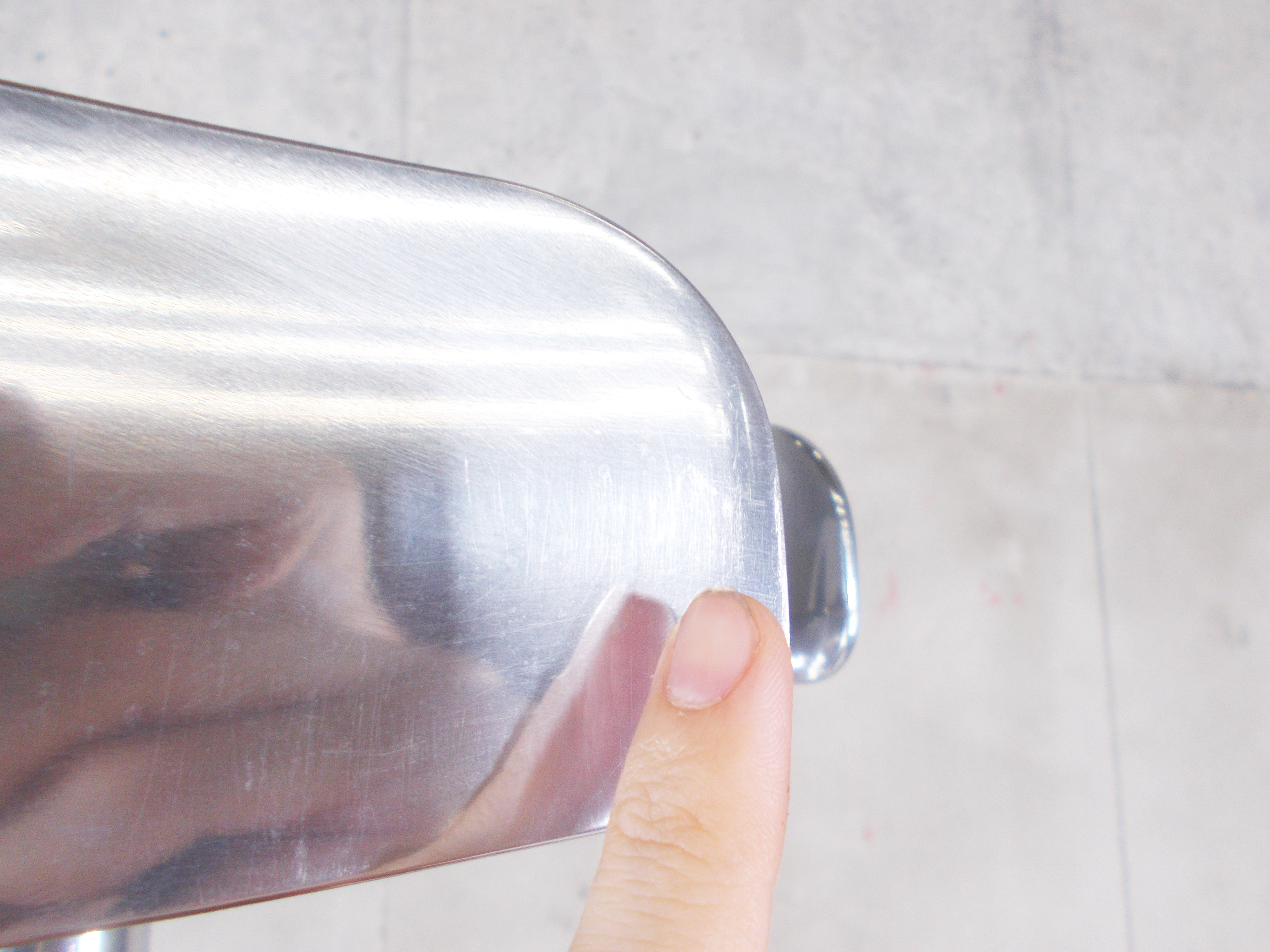 - 目立つ箇所あり傷・凹みが多数、深い傷・凹みが一部ある。(例、正面、背部、サイド部分にある。)