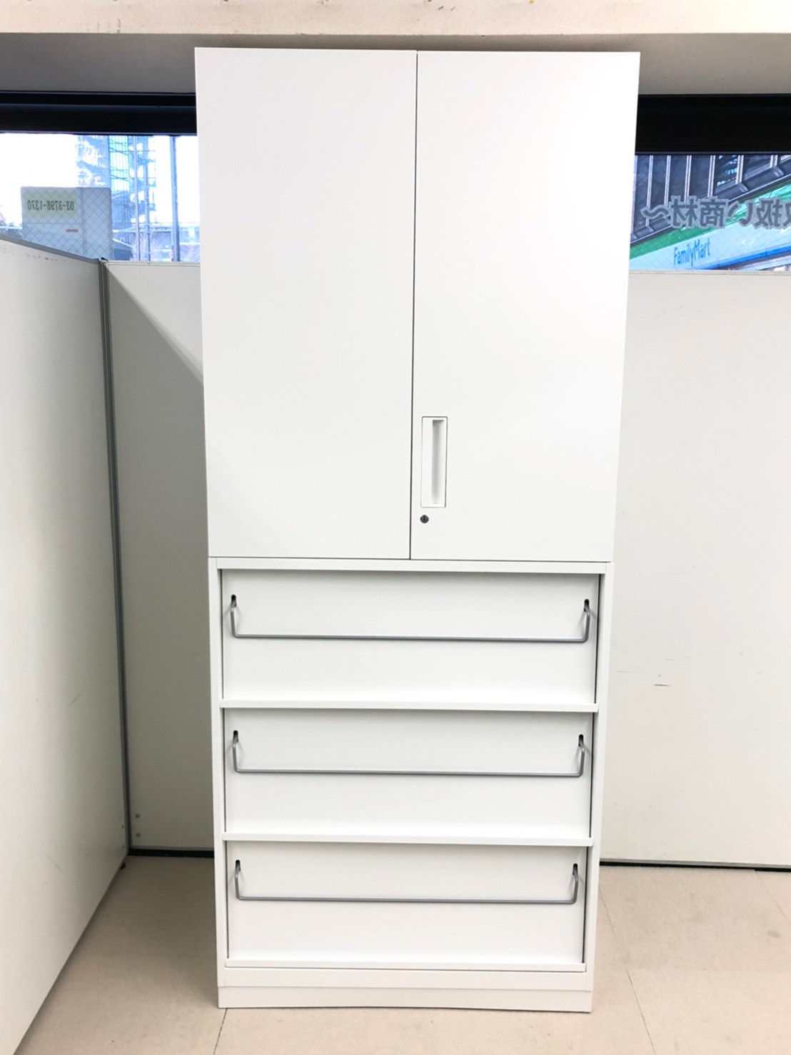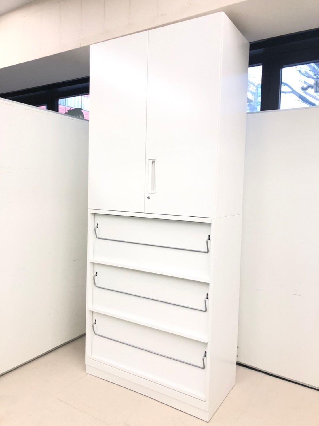 【両開き書庫とクリスタルトレイキャビネットの上下書庫セットの入荷です】 ■コクヨ/エディア/ホワイト 両開き+クリスタルトレー 深型3列11段 計33段