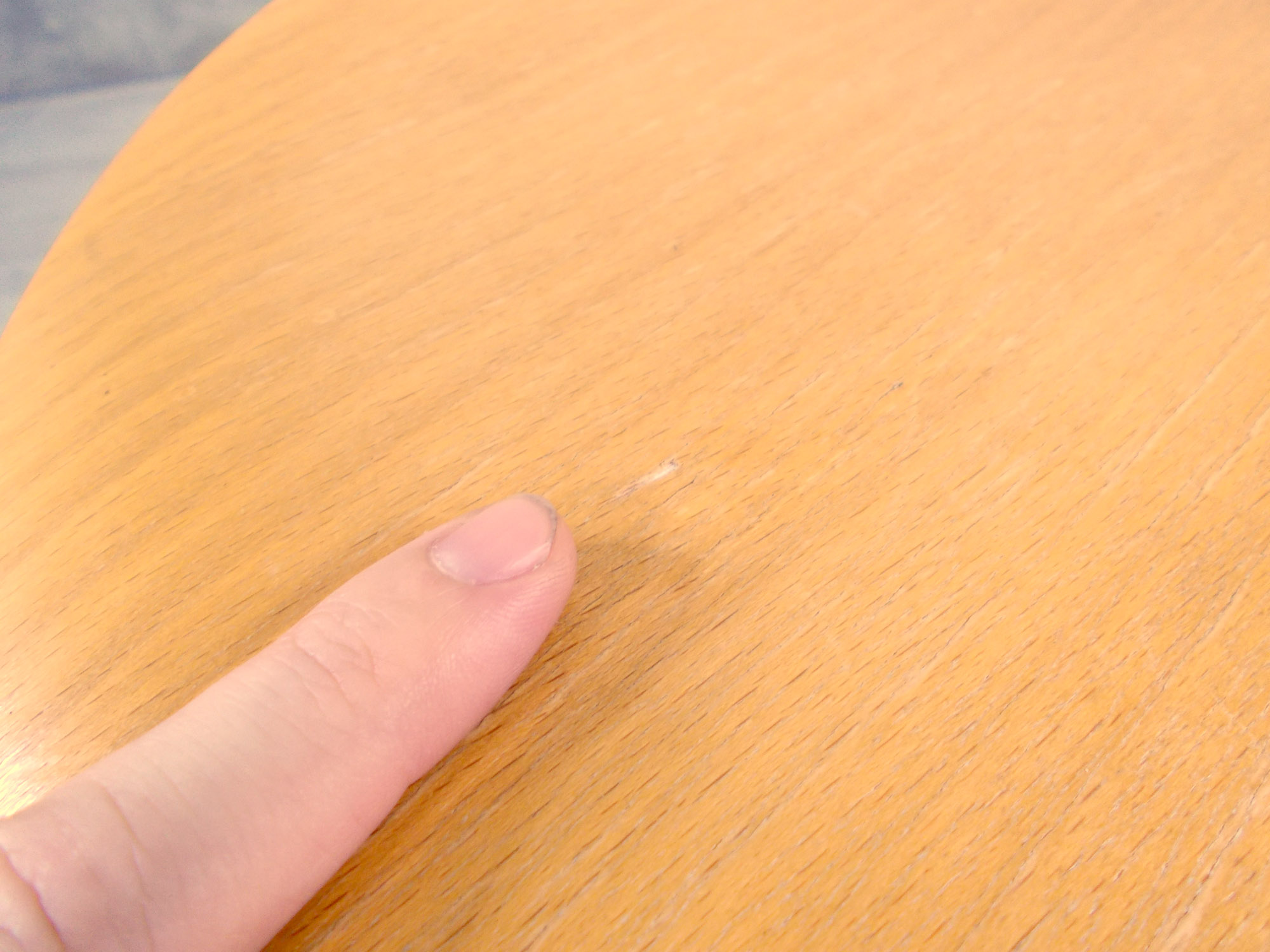 - かなり強い濃い黄ばみ・変色が商品全体にある。(例、座面・背もたれ、脚部等にある。)