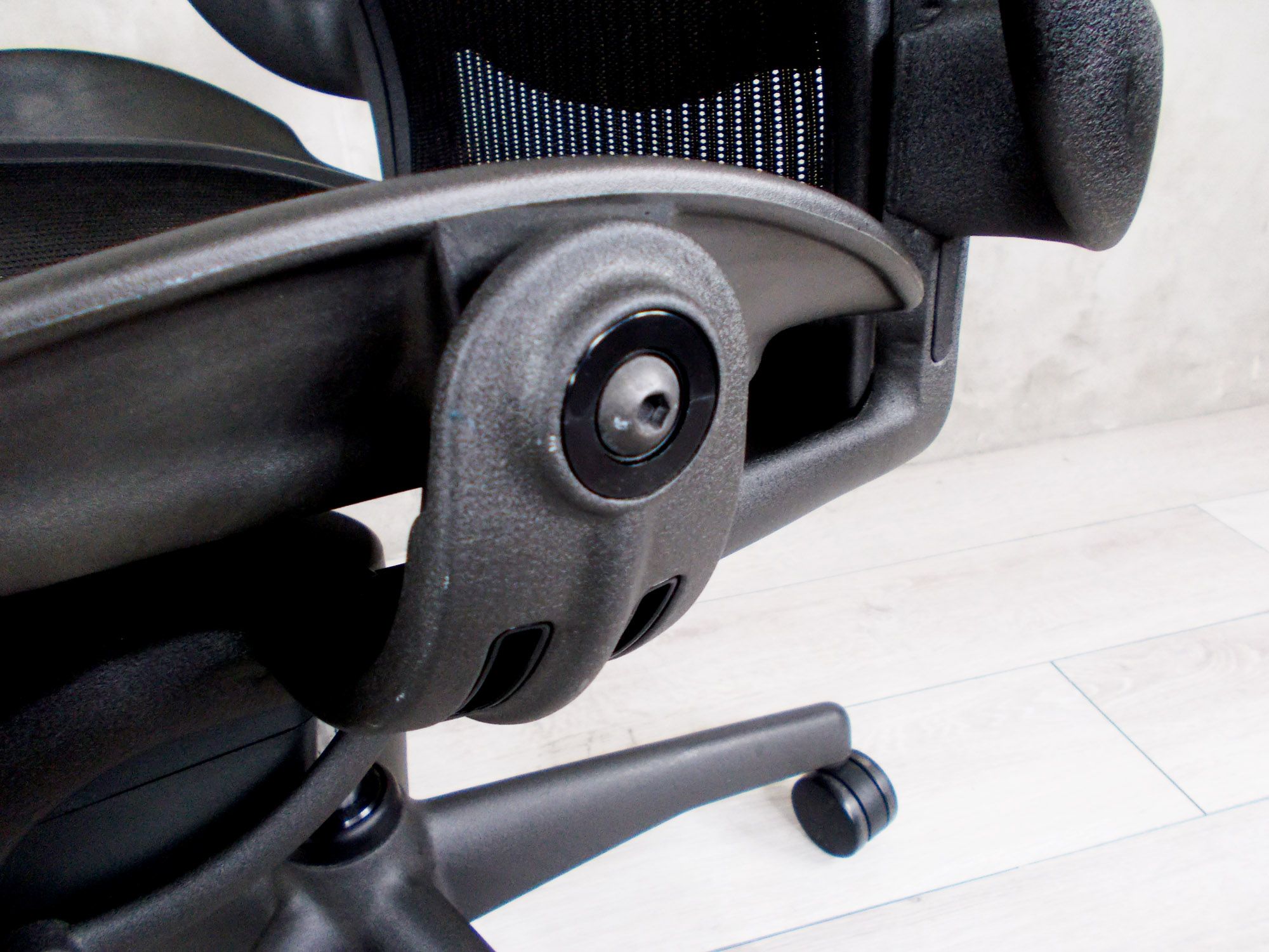 【★状態イマイチのためお安く!】■ハーマンミラー製 アーロンチェア Bサイズ 固定肘 ※キズあり・ランバーサポート無・昇降ガス圧弱めのためお安く!【訳あり特価品】