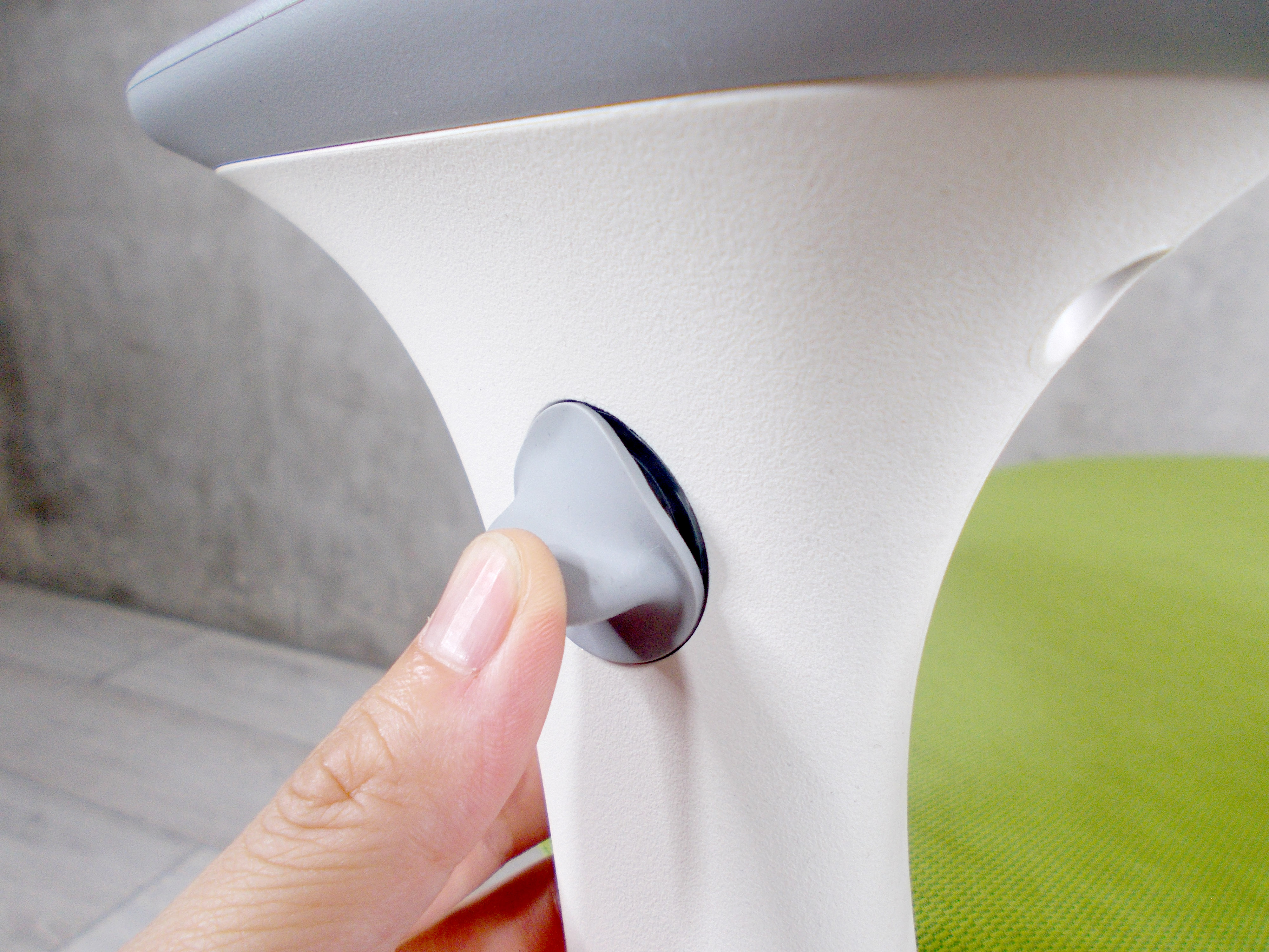 - 座ったまま、レバー操作一つで、簡単に座面を前傾できます。前傾姿勢を取ることが多いデスクワーカーに最適です。