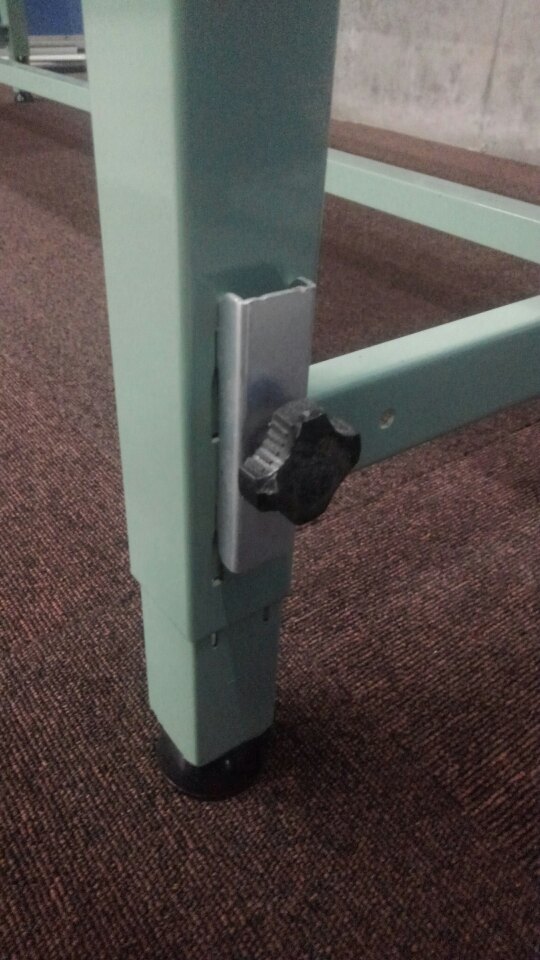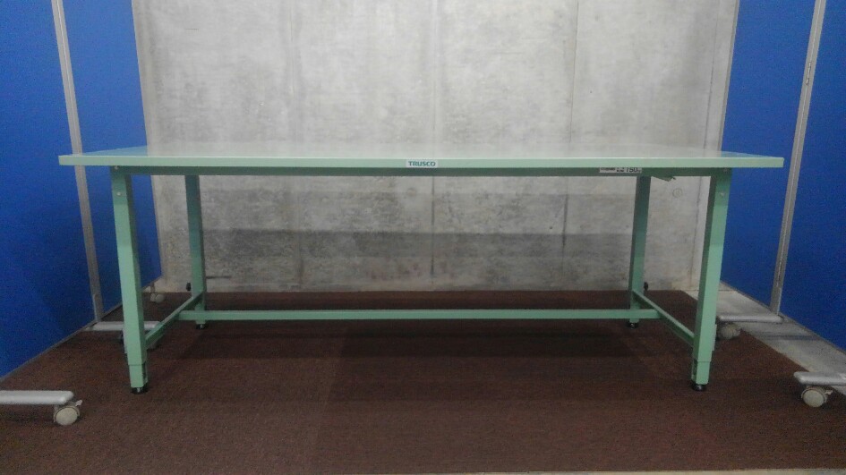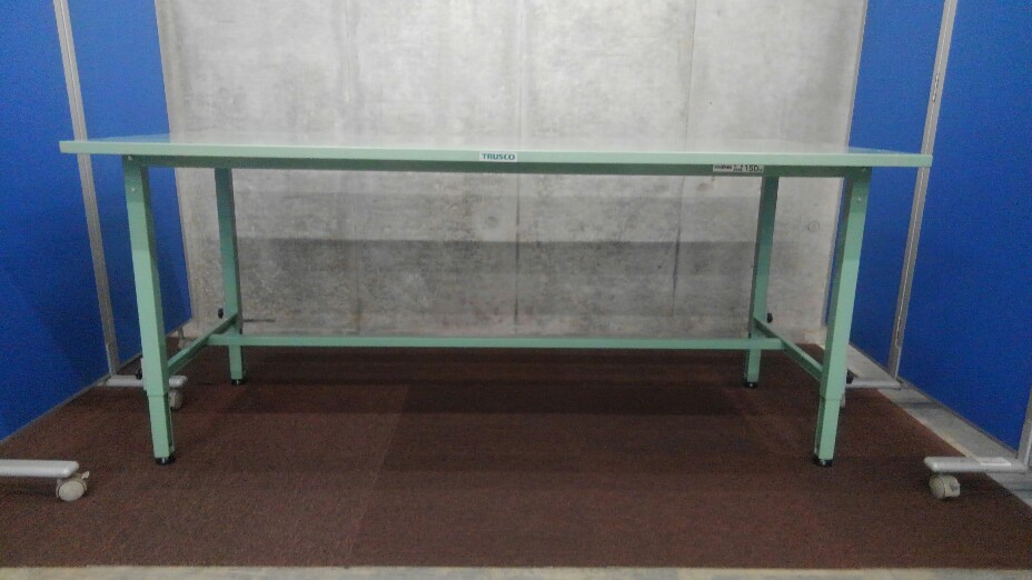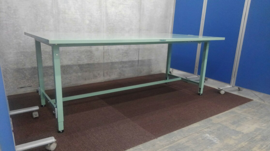 高さ調整の出来る作業台が初入荷致しました! ピッキングした商品の梱包作業などの必需品!! 均等静止荷重:150kg アジャスター付き!! ※マテハン本舗の中古商品は、千葉県柏市に在庫がございます。- マテハン本舗