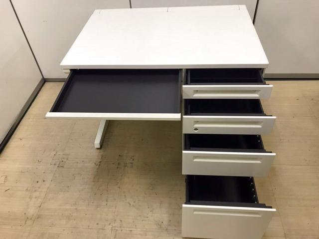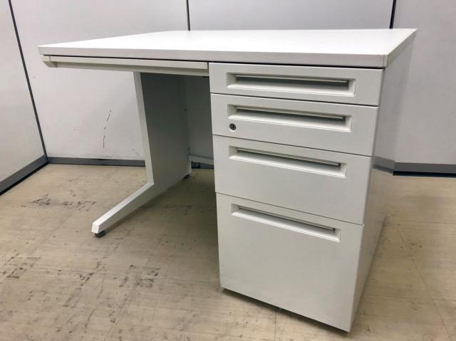 【T11】【商品入替のため、残り6台限り】オカムラ製 アドバンシシリーズ ホワイトカラー 4段収納で整理も完璧! コンパクトで清潔感のあるオフィス W1000片袖机!!