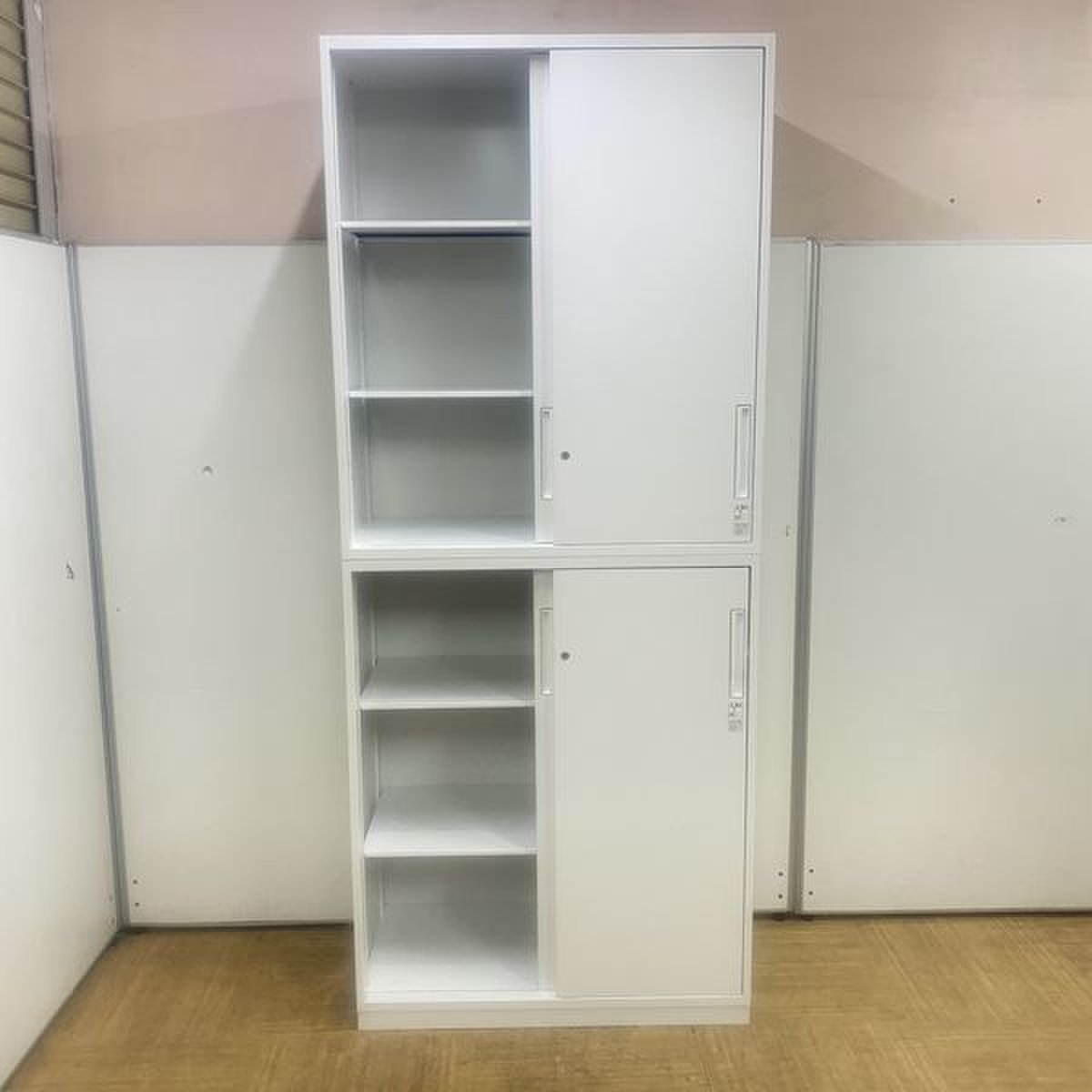 【在庫セール品・7台限定】【T12】■コクヨ(KOKUYO)製 エディアシリーズ(EDIA) 上下引き違い書庫セット ハイキャビネット H2150㎜ ■2枚扉 ■シリンダー錠 ■ホワイト【レアな引き違い書庫セットがロット入荷! 手狭オフィスで大活躍!導線を確保できる上下引き違い書庫セット!】