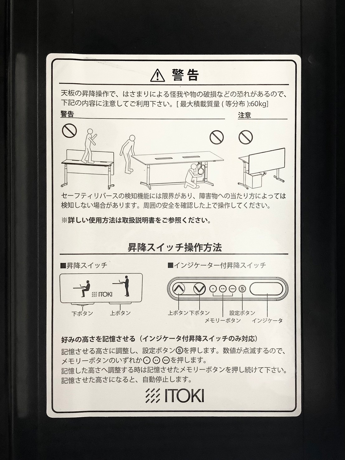 イトーキ製のトイロシリーズ、昇降デスクが入荷致しました。
