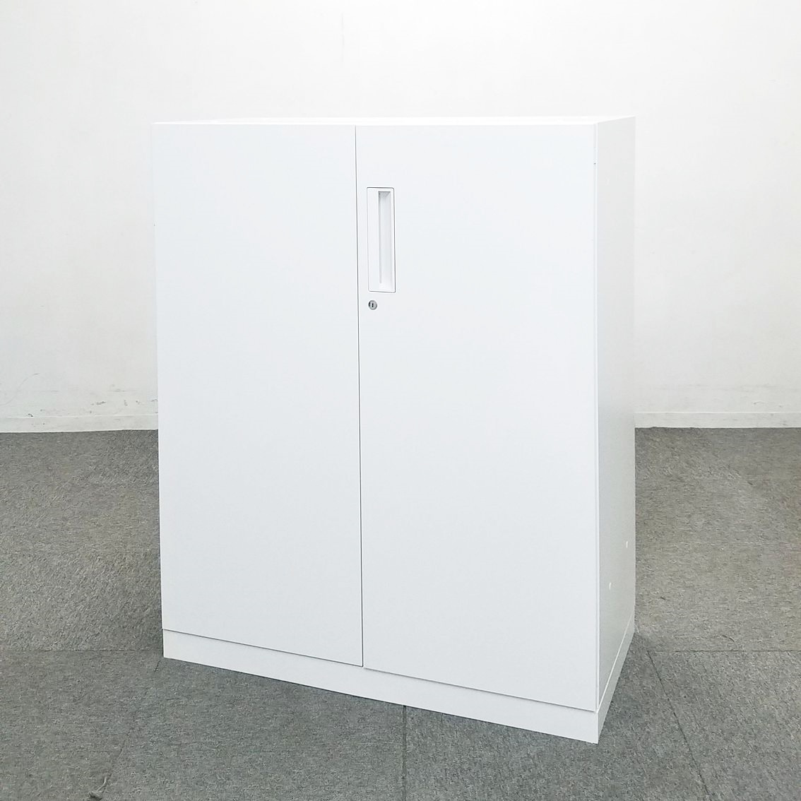 【収納物がひとめで分かる両開き戸タイプ!】■コクヨ(KOKUYO)製 エディア(EDIA)シリーズ 両開き書庫 ローキャビネット H1130㎜ ■天板・ベース付 ■ホワイト ■シリンダー錠