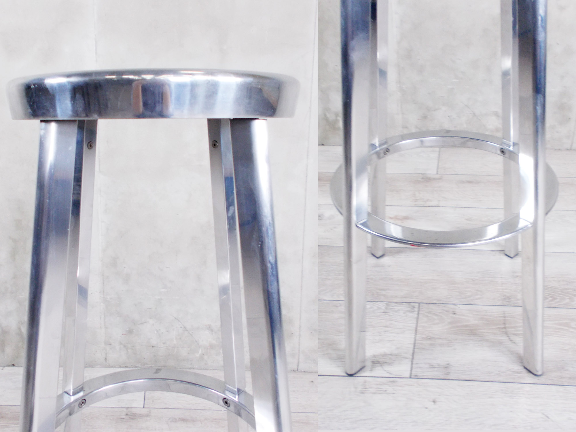 シンプルなデザインにミラー仕上げのアルミニウムを使用した、スタイリッシュなスツール。