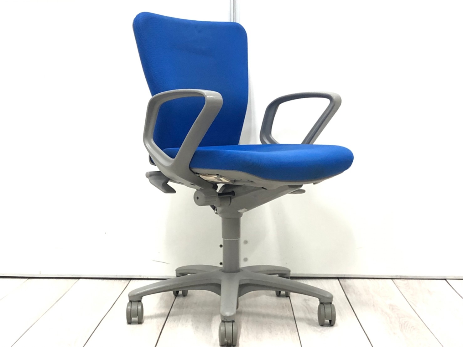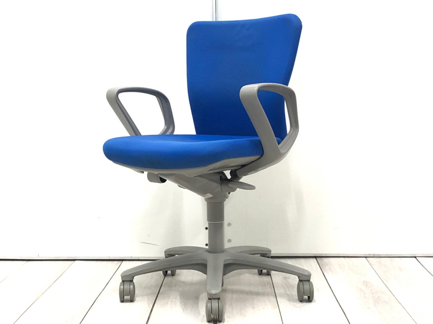 【残り2脚!!】【在庫入替セール品!】青~い定番いつものチェア!ローバック肘掛け付き仕様■オカムラ/カロッツア/ブルー- 立川・八王子店