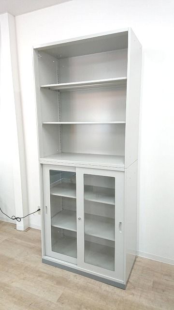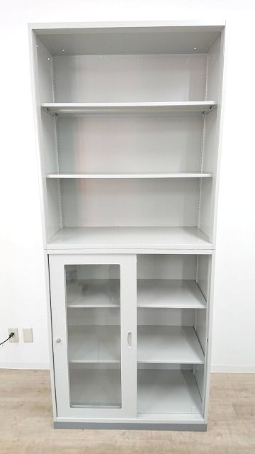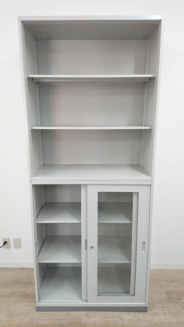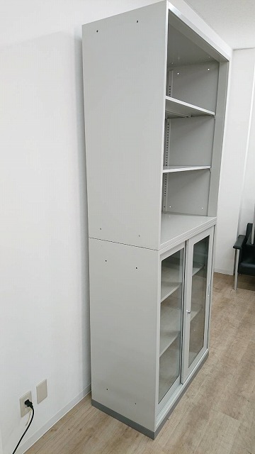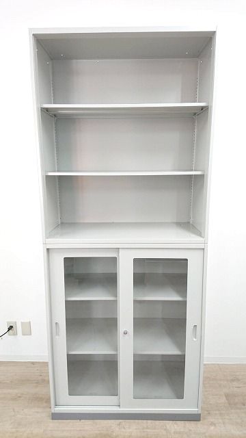 ナイキ製の上オープン書庫・下ガラス引き違い書庫のセット商品の入荷です。