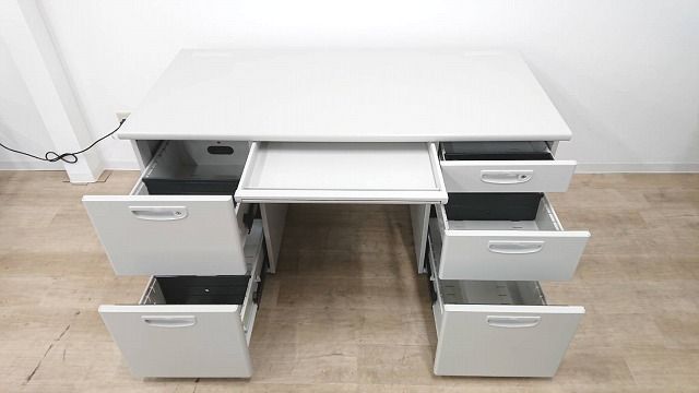 【定価約14万円】【シンプルで使いやすい両袖机の入荷です!!】【オフィスに馴染むニューグレーカラー】■ナイキ製 両袖机※仙台店撮影画像※おつとめ品【B】- 仙台店