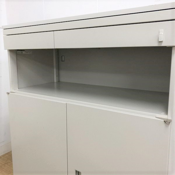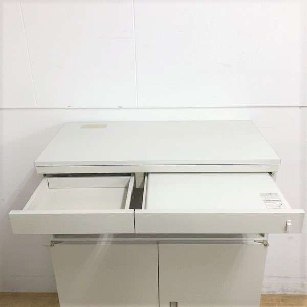 - 一部不具合ありそ引出の開閉不可、施錠不可、棚板無しといったの書庫の本来の効用を果たすための機能以外の一部が使用不可(例、扉、引出の開閉がしづらいなどがある。 )