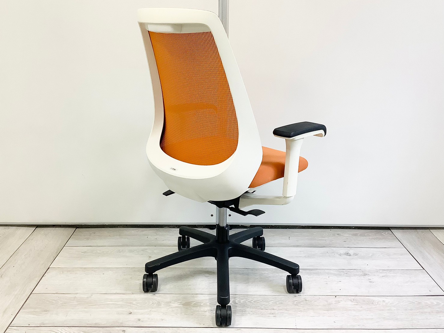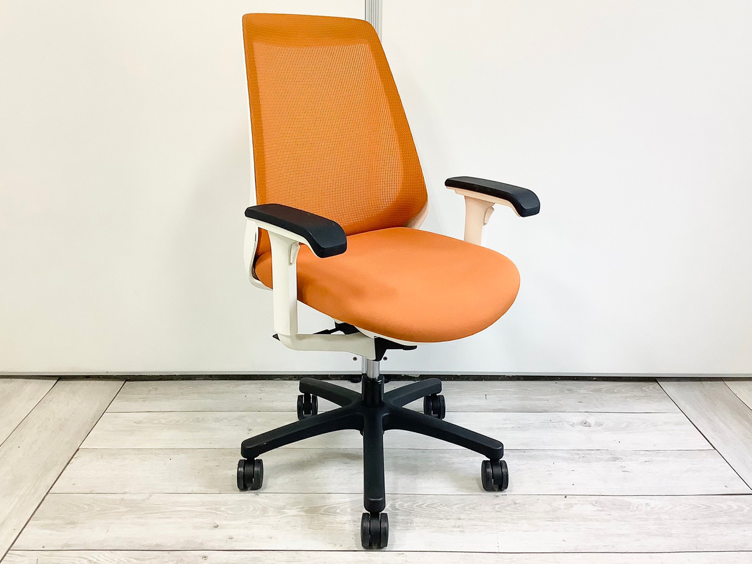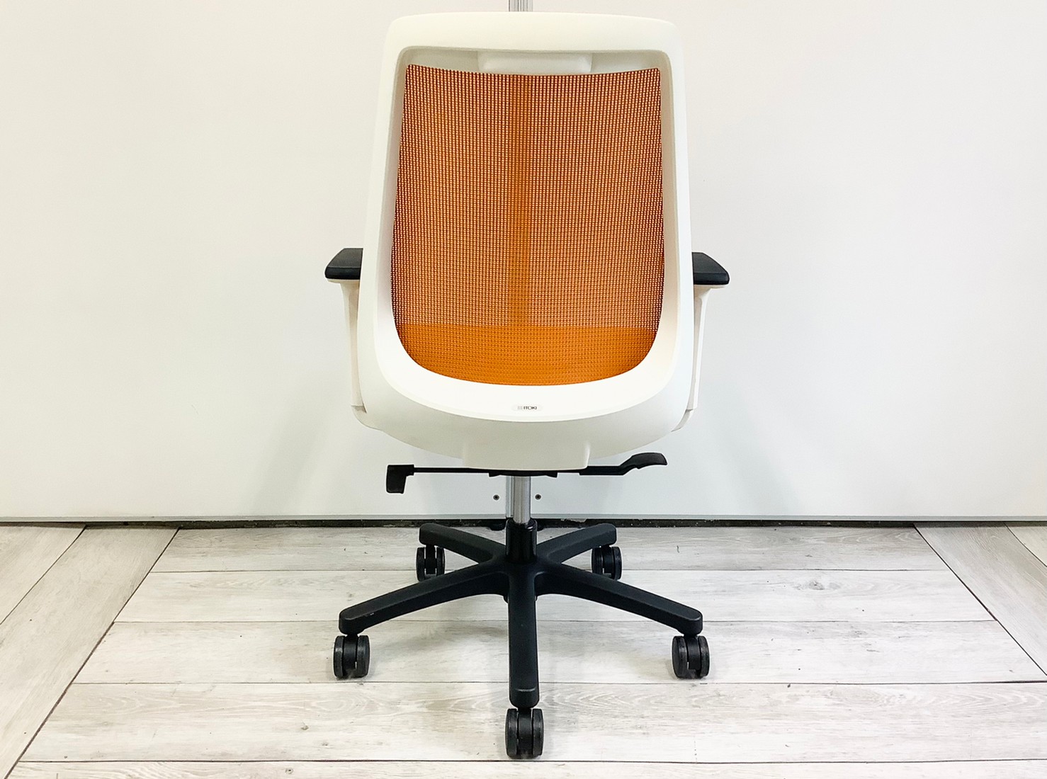 【座りやすくてコンパクト!肩回りが動かしやすい背面メッシュの人気チェア!】■イトーキ(ITOKI) ノナ(nona)チェア ハイバック 肘付き ■サークル肘 ■背面メッシュ ■アンバーオレンジ × ホワイトシェル