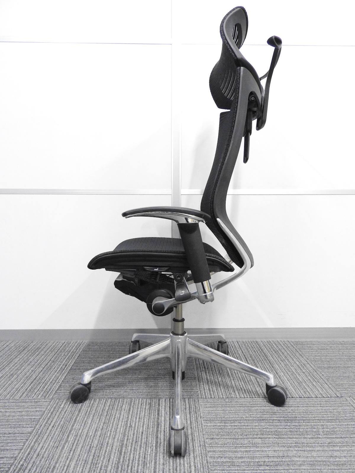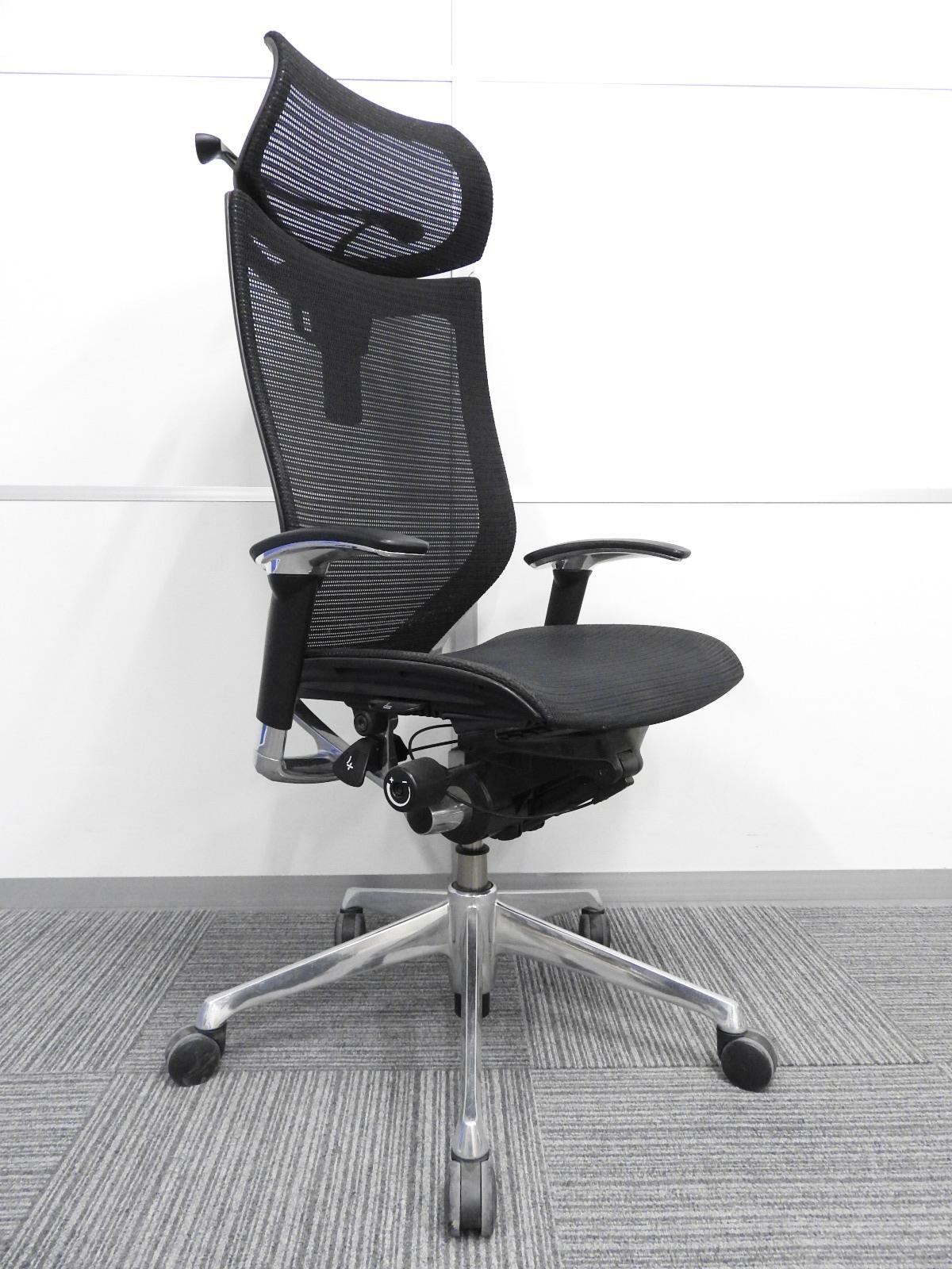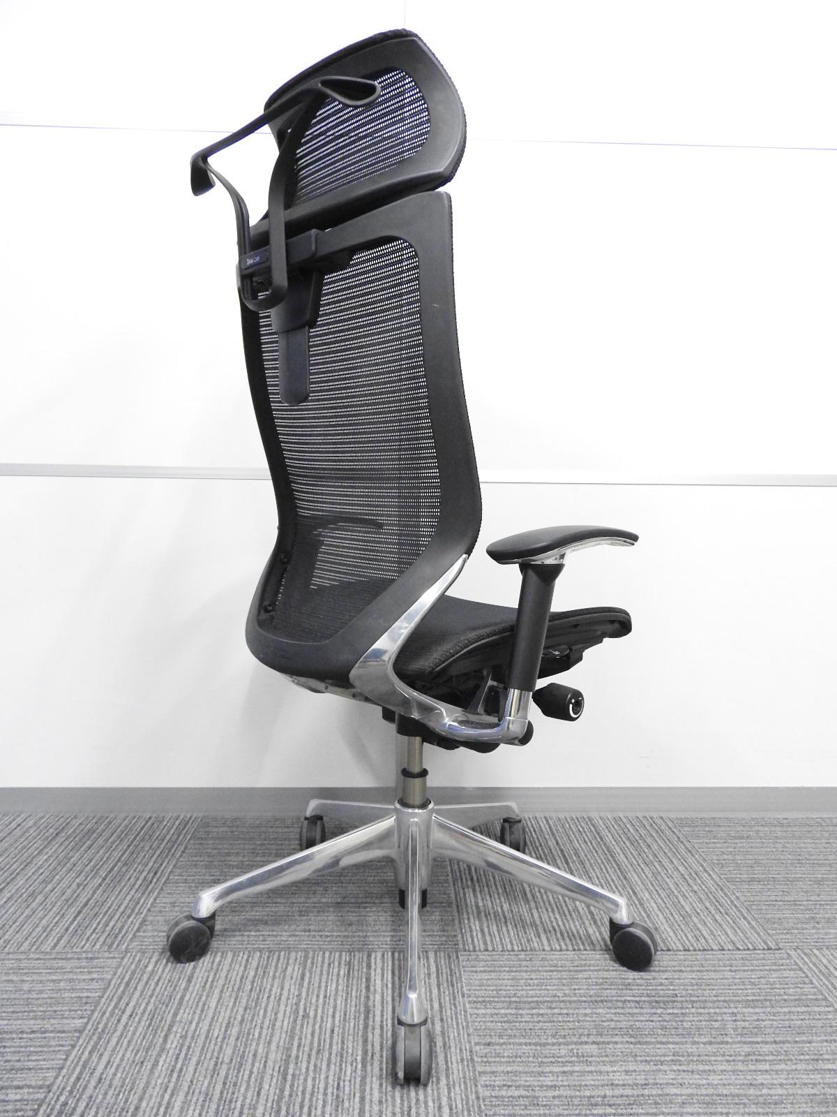 【バロンの最上級モデル!】■オカムラ製 バロンチェア ヘッドレスト付 ブラック 背座メッシュ ■【オプションフル装備!】可動肘付 ハンガー付 ポリッシュフレーム- 川崎店