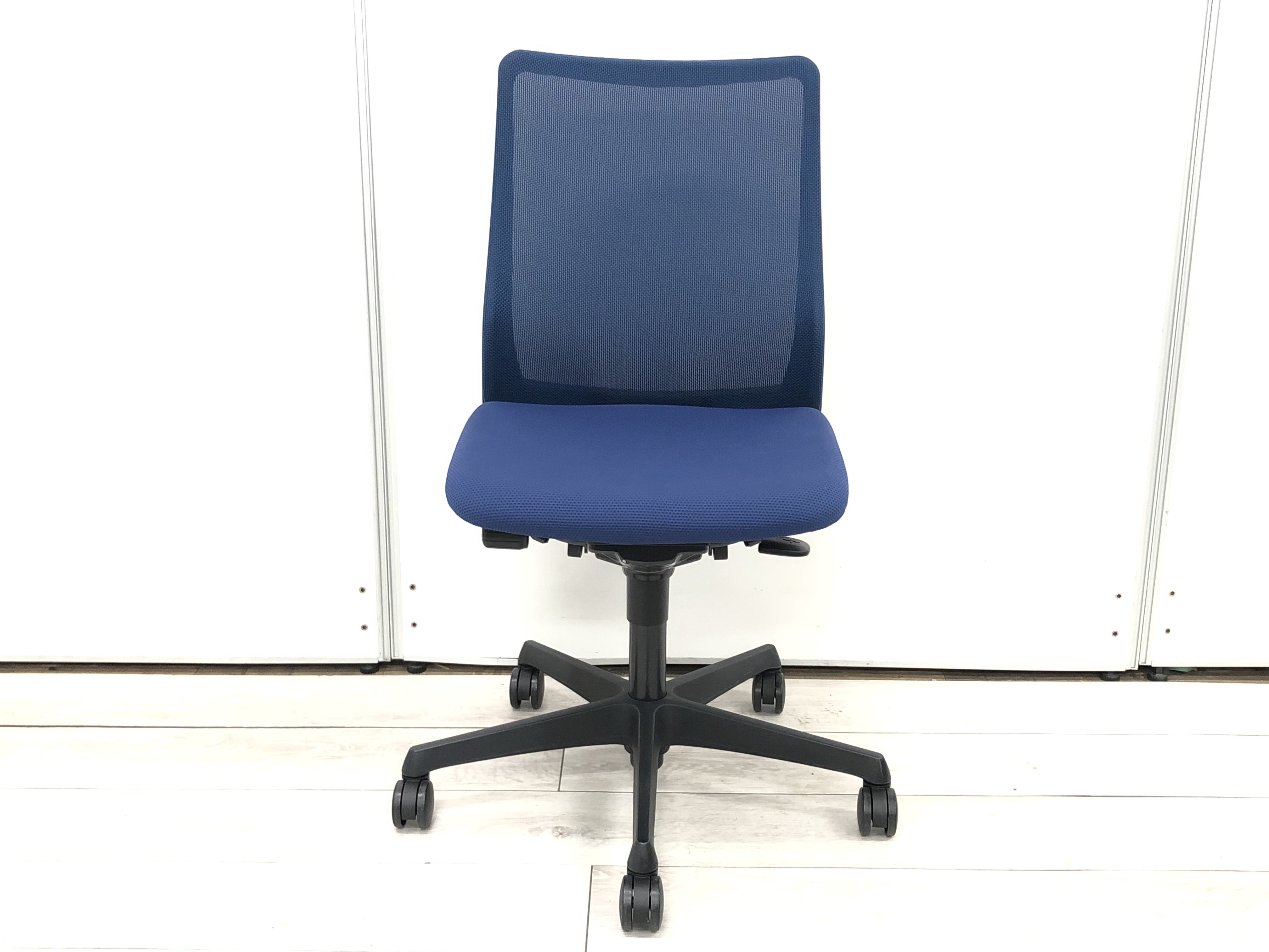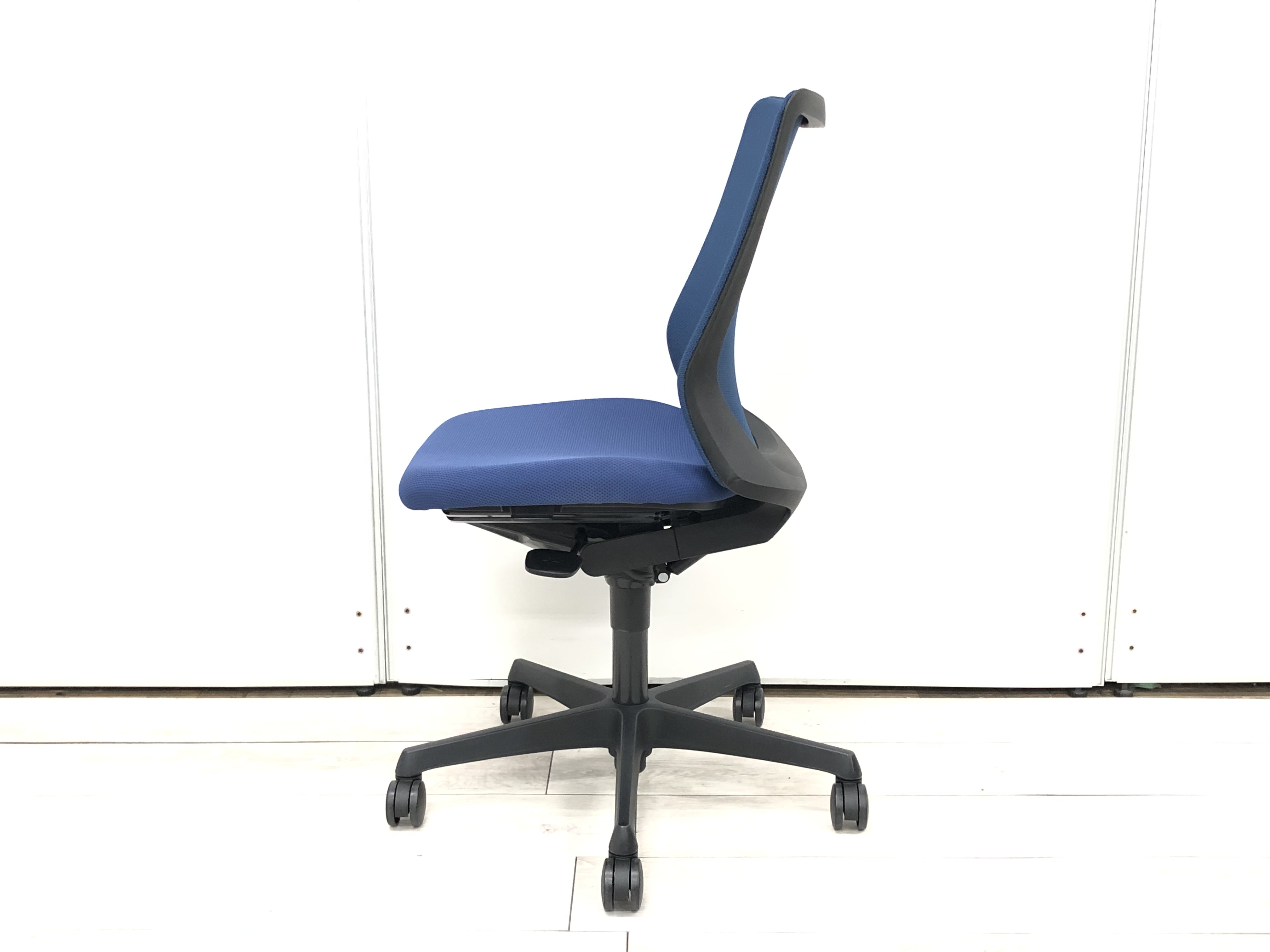 【背中を立体的に包み込む!】【シルフィの座り心地を低コストで再現!】■オカムラ(okamura)製 フルーエントチェア ローバック 肘無し ■背面メッシュ ■ミディアムブルー×ブラックシェル