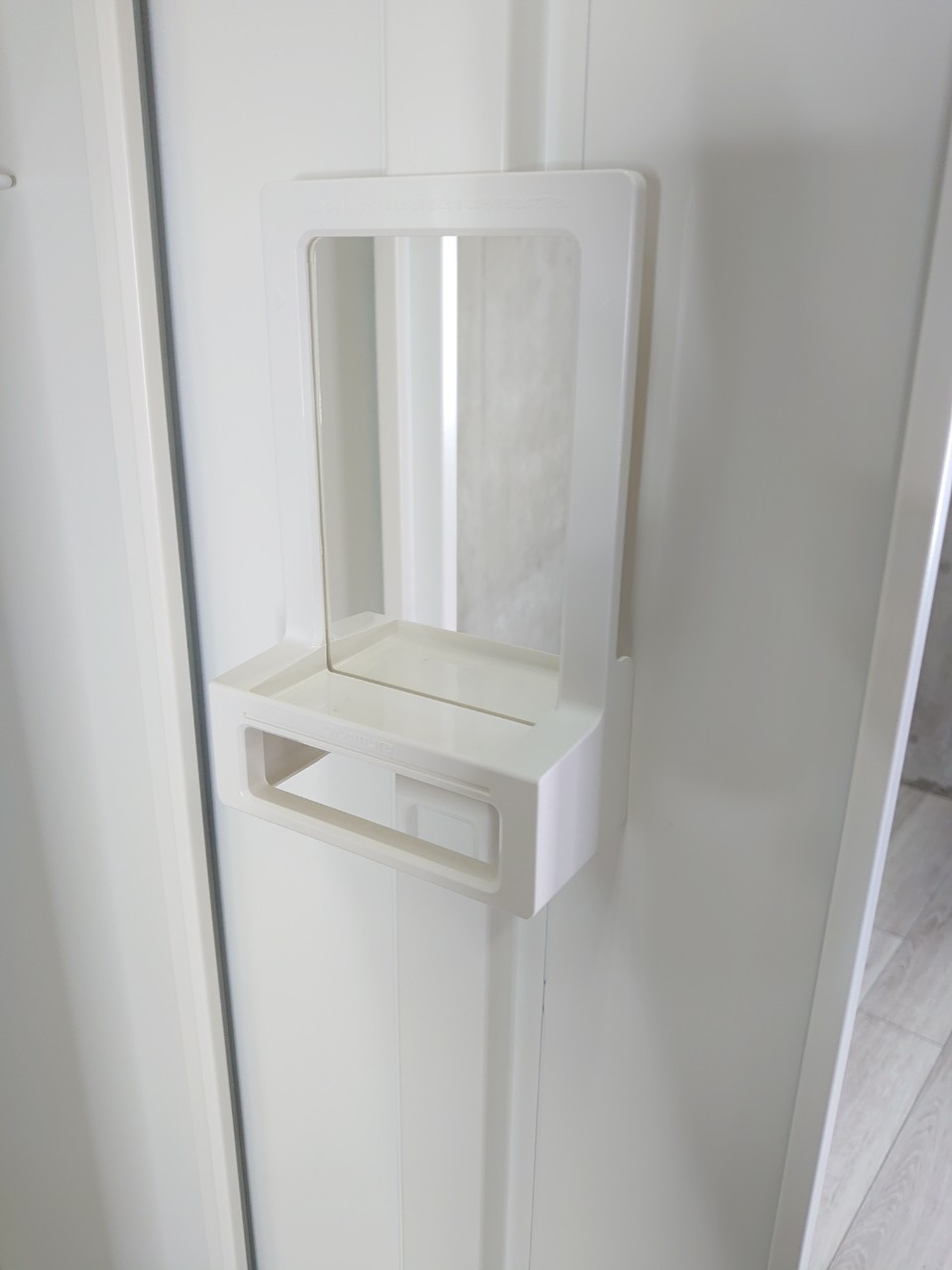 取っ手の裏手には鏡がついているため、女性に嬉しい仕様となっております。