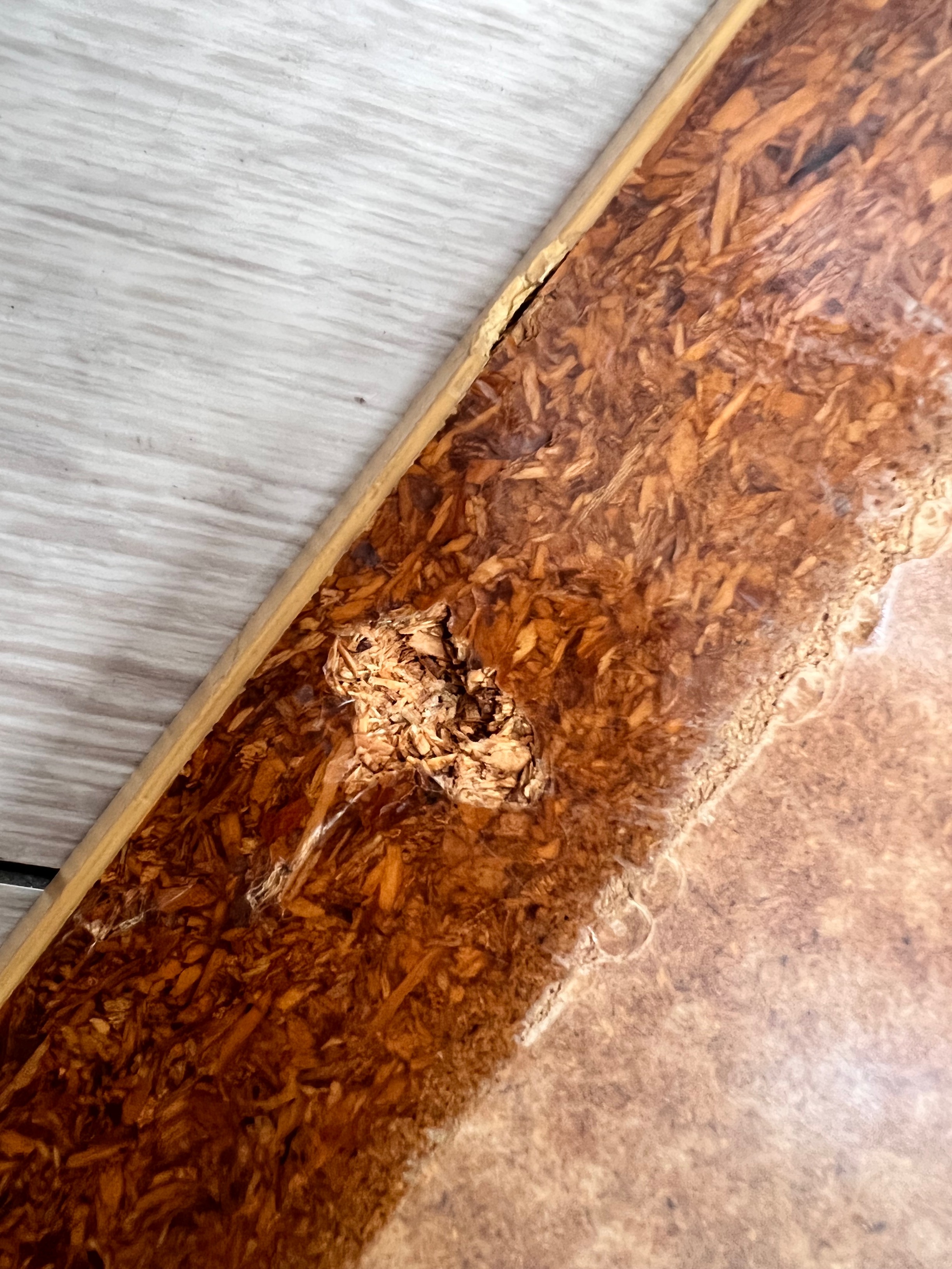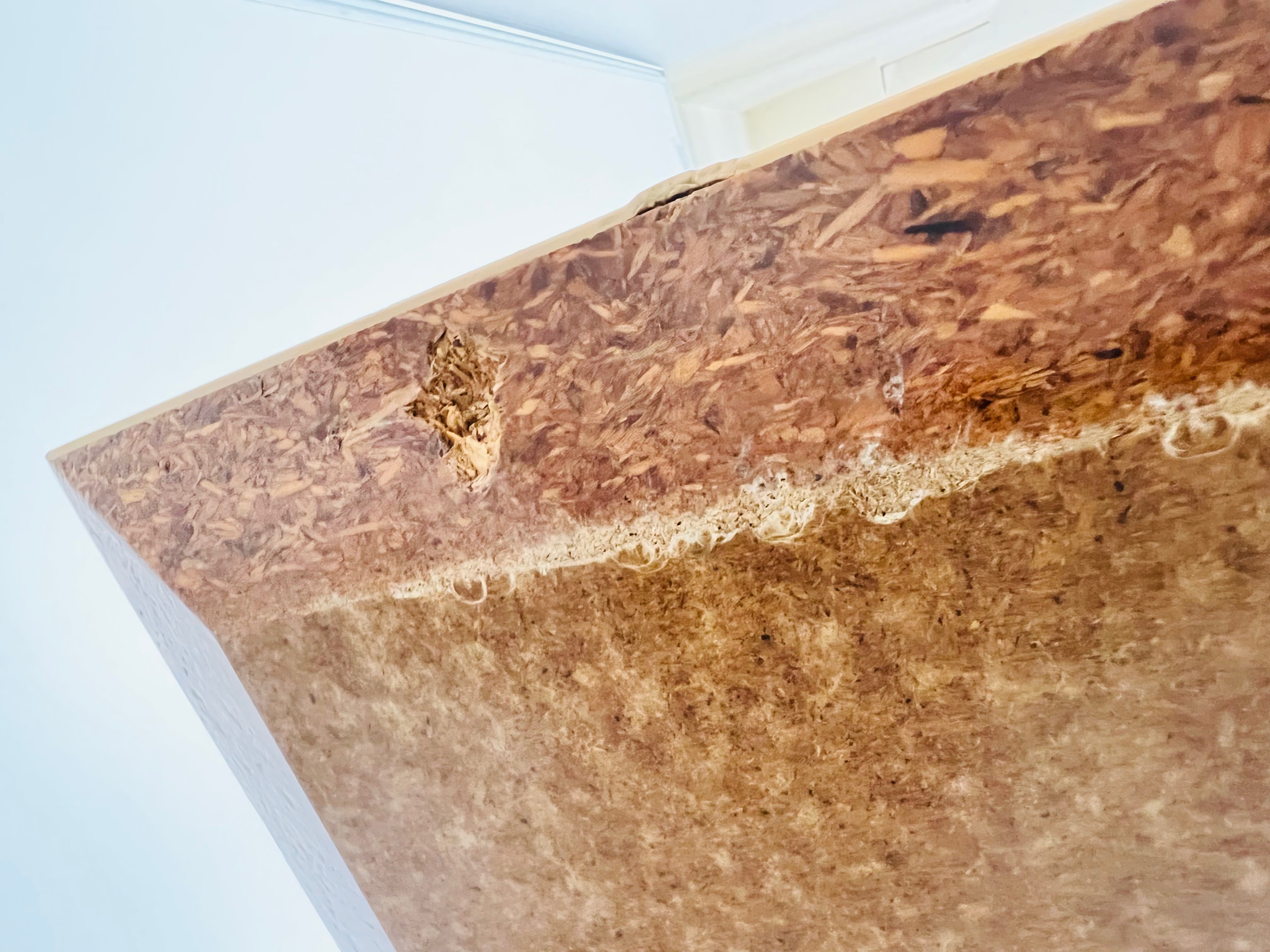 - かなり強い濃い黄ばみ・変色が商品全体にある。(例、天板、幕板、棚板、サイド部分、脚部等にある。)