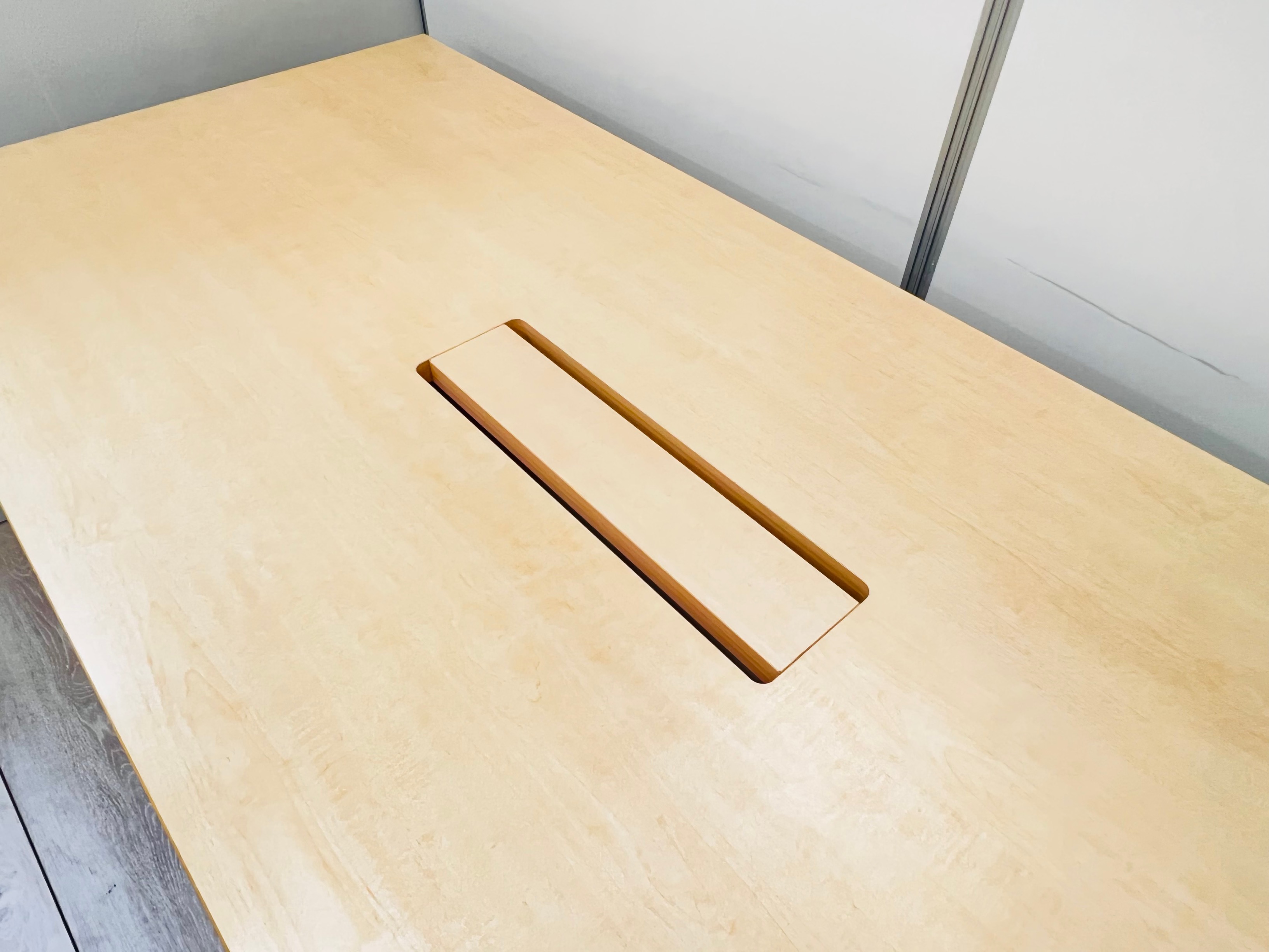 ちょうどいい位置に配線孔がついてます ※天板にカッター傷あり ※天板の裏部分にえぐれ傷あり ■イトーキ/ミーティングテーブル/幅2100mm奥行900mm- 池袋店