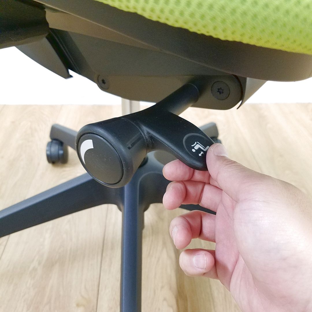 - 座面右下のダイヤル操作で、リクライニングの強弱調整が行えます。これまでのダイヤル式よりも、少ない回転数で、最弱?最強の調整が可能です。