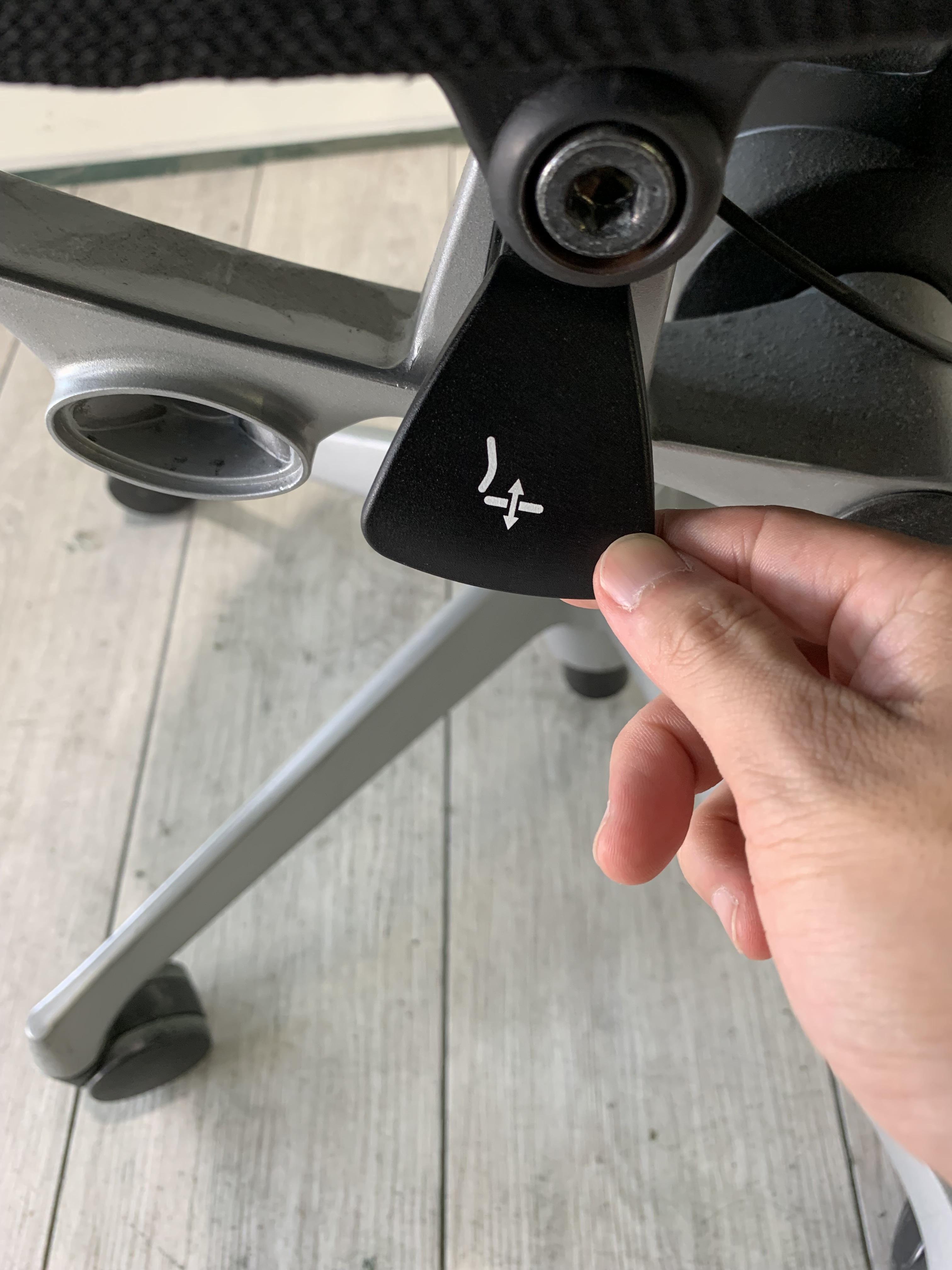 - 座面の右下にあるレバーの操作により座面位置を上下に100mm分調整することが可能です。