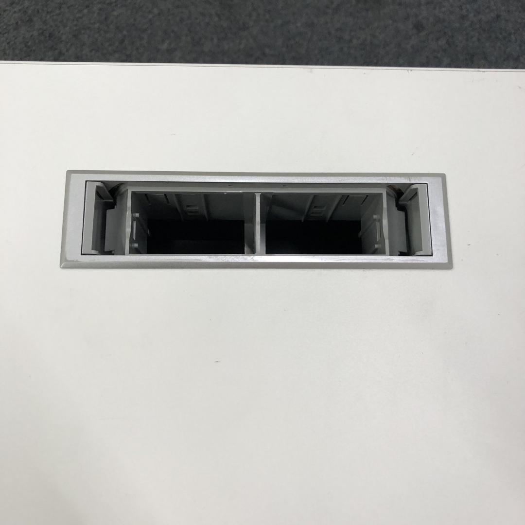 【W1800の2~3名用のサイドスタックテーブル!】オカムラの配線孔付・棚板付のホワイト天板仕様です!【会議・セミナー・打ち合わせ用に!】- 足立・葛飾店