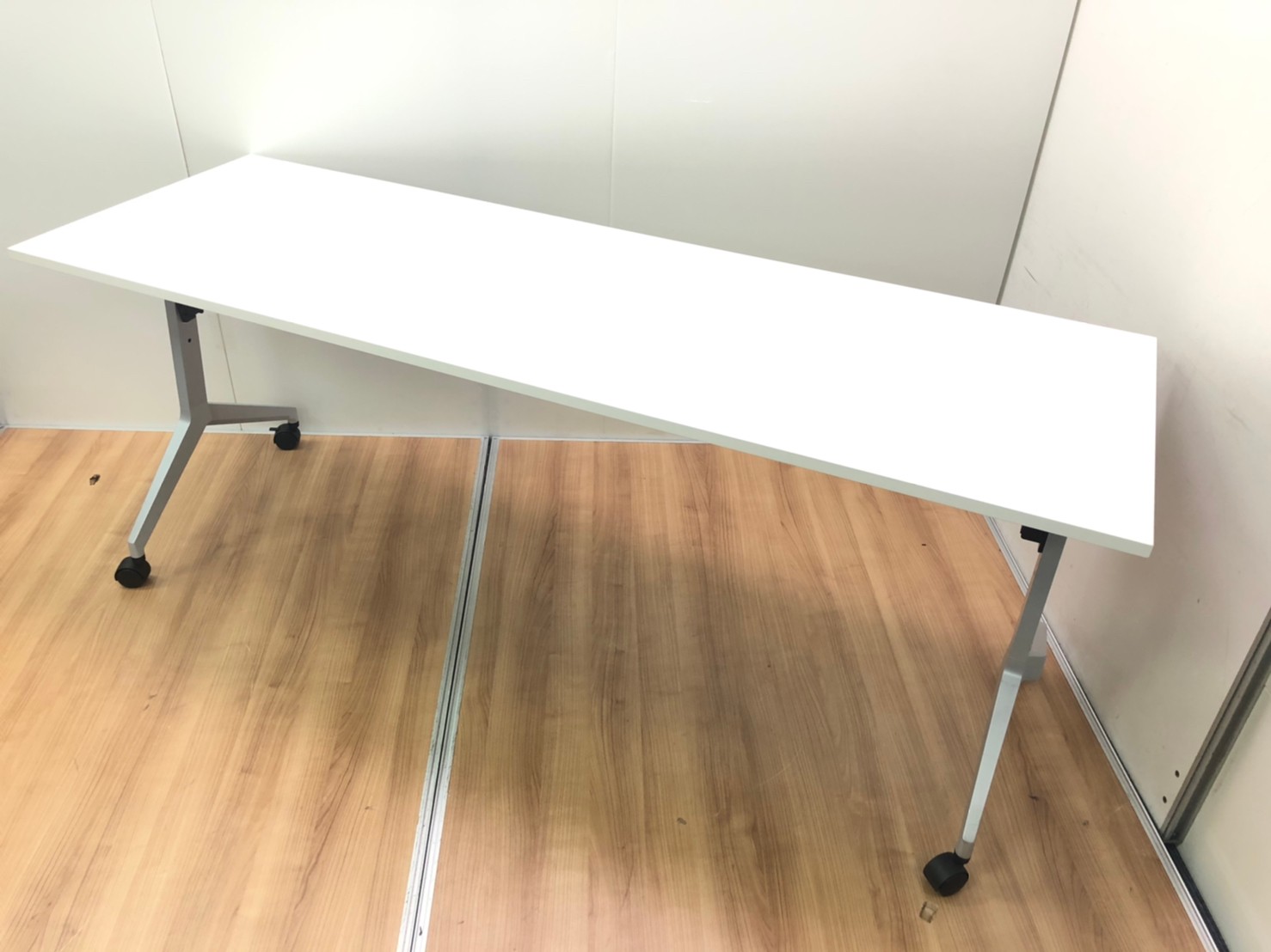 【会議用テーブル】広々使用できます/キャスター付き/コンパクトに収納/2019年製- 千葉店