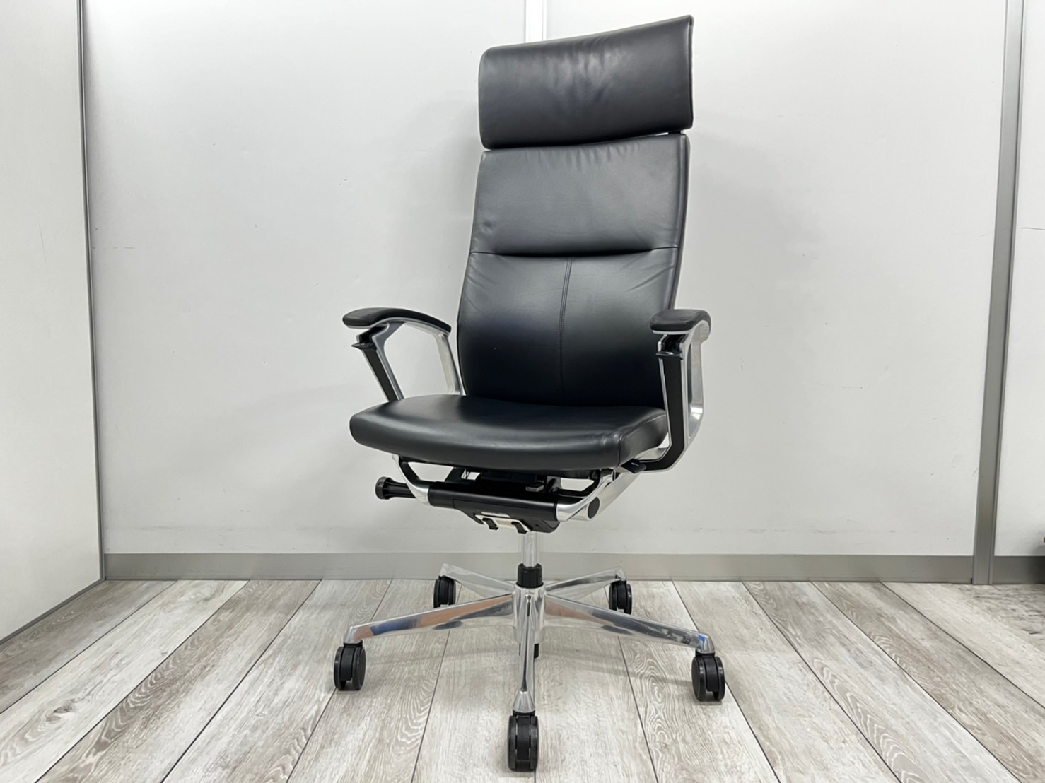 【最高級チェア入荷!】 革張りなので役員様用にも! デューク/ブラック/ヘッドレスト付き ※肘部分に使用感あり在庫がある店舗一覧