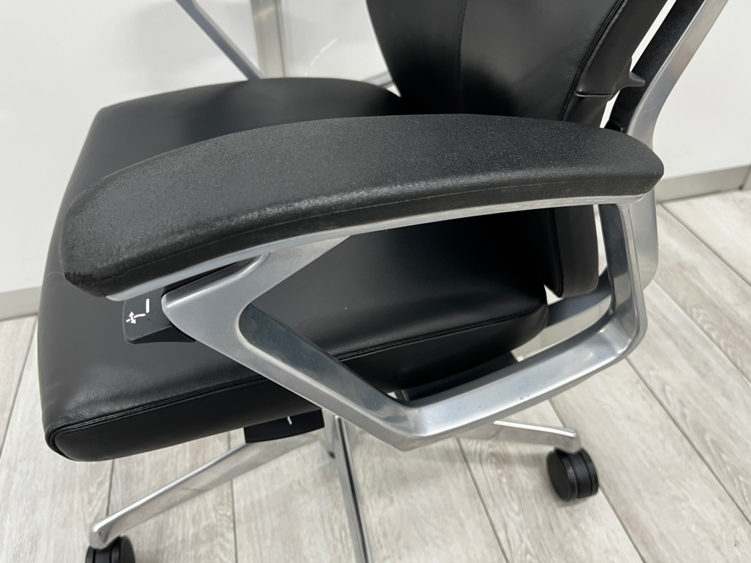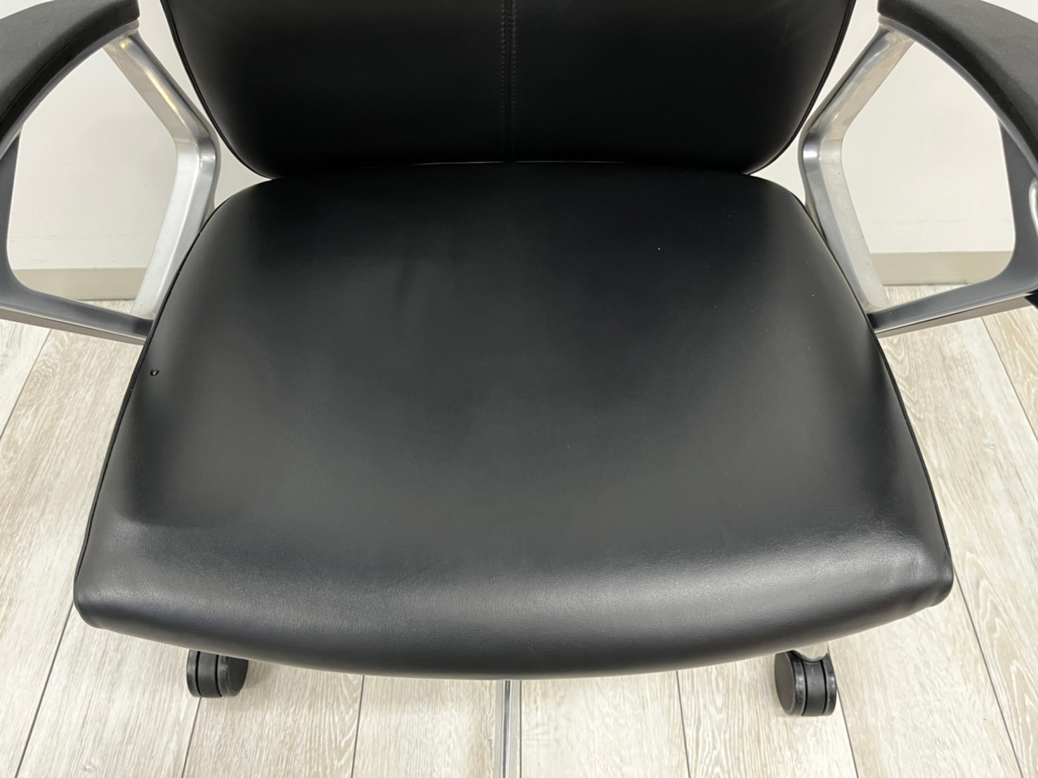 【滑らかで高級感あふれる座り心地が大人気!!】■オカムラ(okamura)製 デュークチェア(DUKE) ハイバック肘付き ■レザー張地 ■固定肘 ■ブラック【弊社使用欄:A01037767】