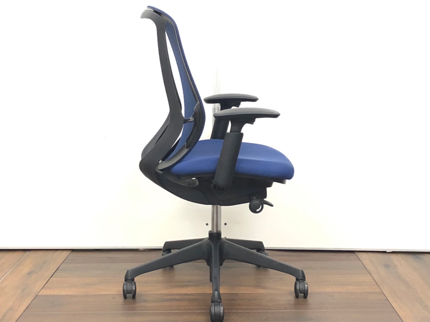 【新品ヘッドレスト交換済み】オカムラ/シルフィー/ブルー/可動肘