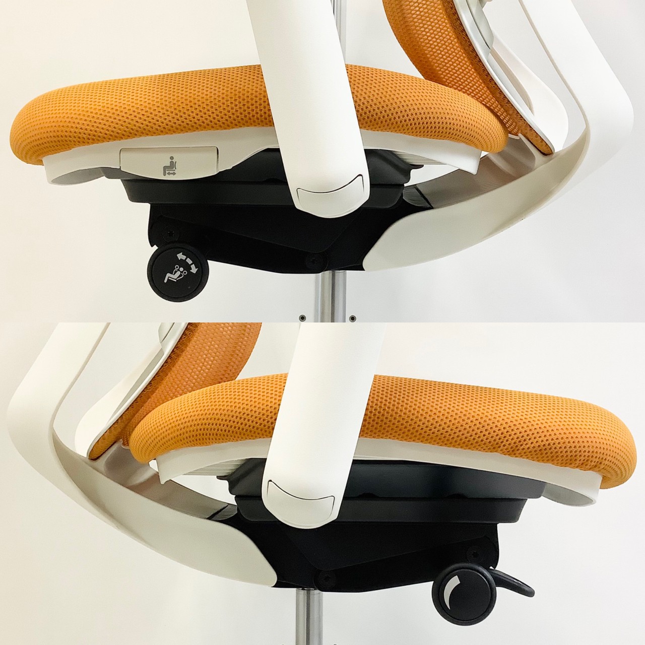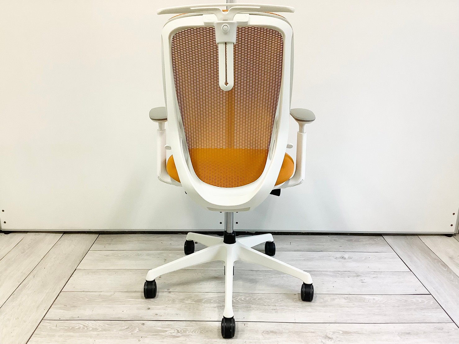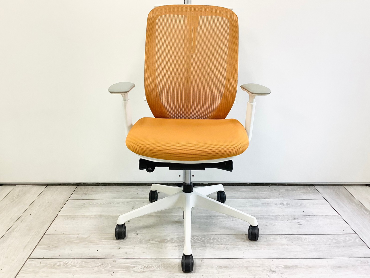 【状態要考慮座面ホツレあり】【通常使用問題ありません!】オレンジカラーオフィス&ご自宅おススメシルフィ―(Sylphy)チェア※ポリッシュフレーム&可動肘掛け&新品ヘッドレスト付◆オカムラ製【2509】弊社使用欄【A01036295 A01031968】