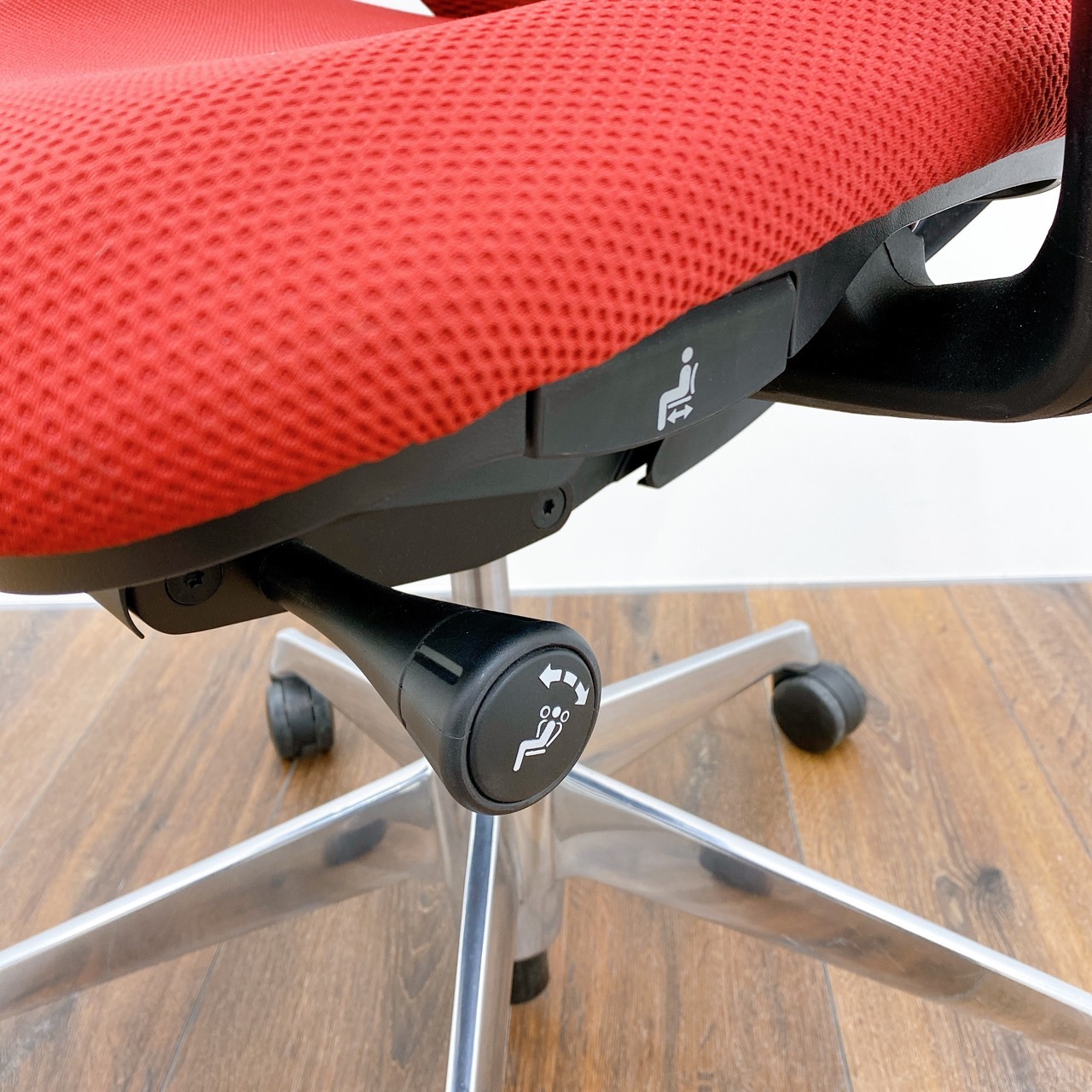 【前傾チルト機能付き】【オカムラ製品で最も人気を集める高機能メッシュチェア!】■オカムラ(okamura)製 シルフィ(Sylphy)チェア 肘付き ハイバック 背面メッシュ ■可動肘・ハンガーなし ■レッド×ブラックシェル【弊社使用欄:A01040841】