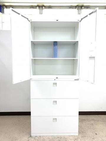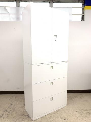 オカムラ レクトライン 3段ラテラル+両開き扉の書庫セット ホワイト シリンダー錠 鍵お付けします 人気商品【愛知・名古屋・豊田・静岡・浜松】