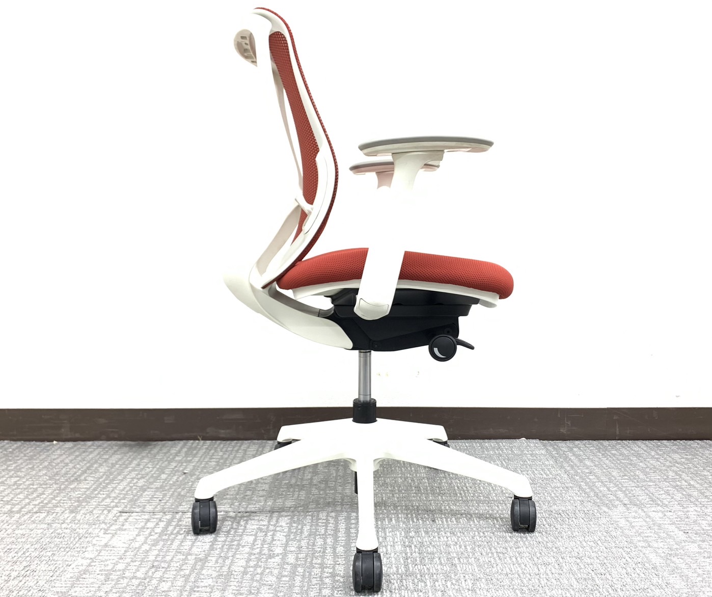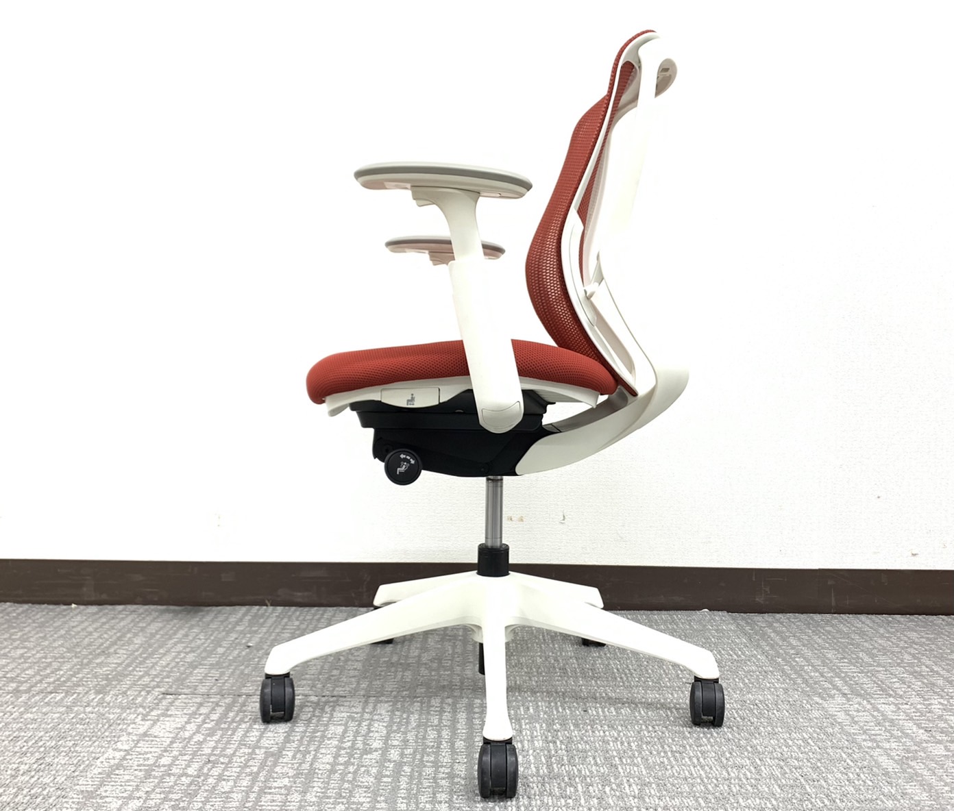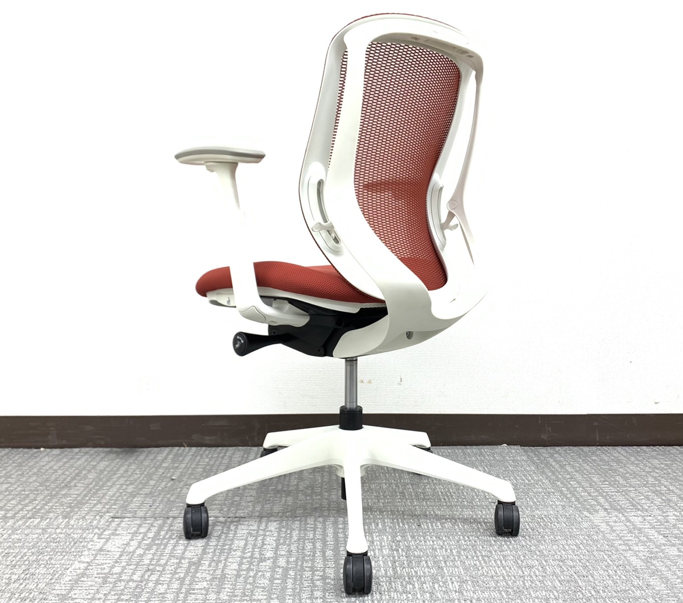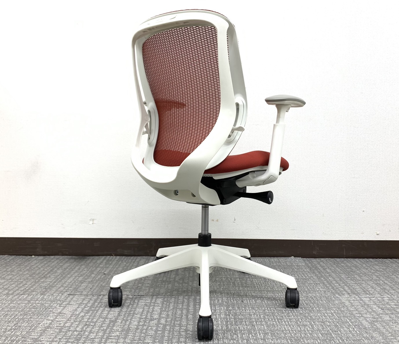 【稼働肘】【前傾機能付き】オカムラ/シルフィー/レッド/ホワイトフレーム コンパクトなローバックタイプです!オフィスの執務室などに如何でしょうか!サーキュラーバリューCO2削減量の算出について
