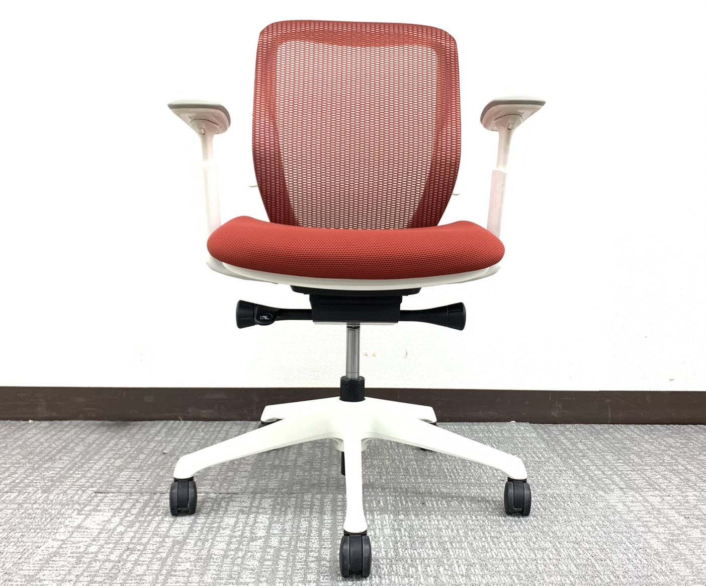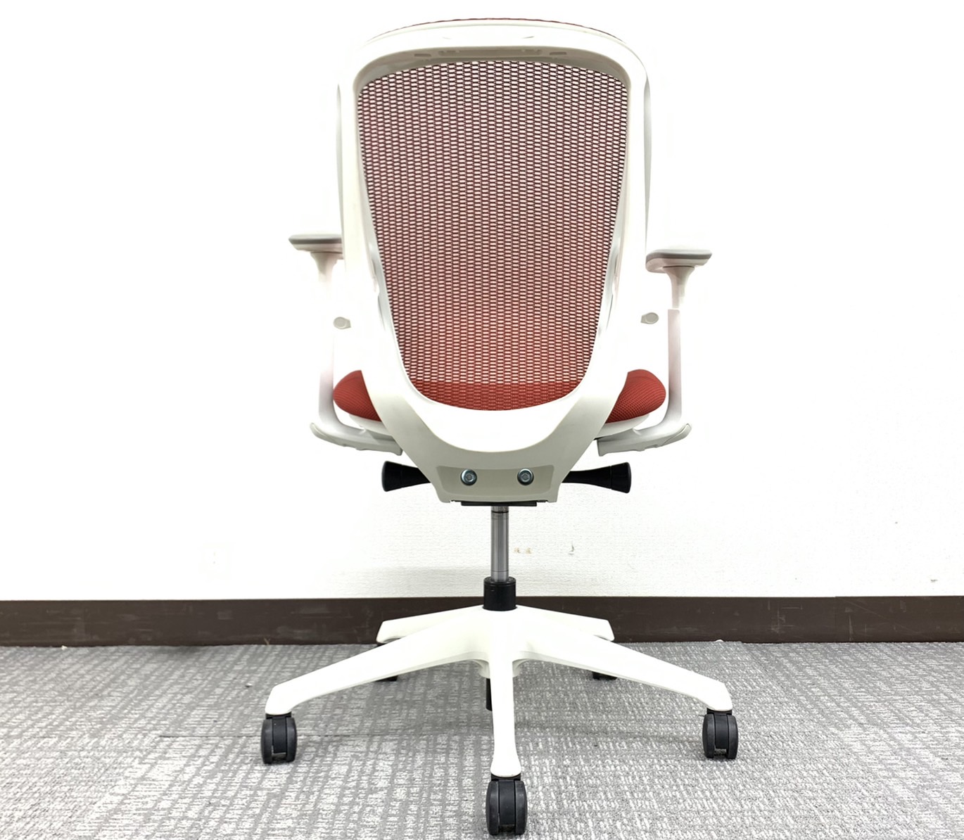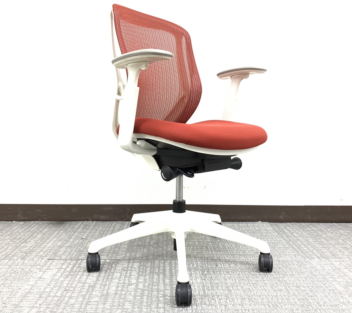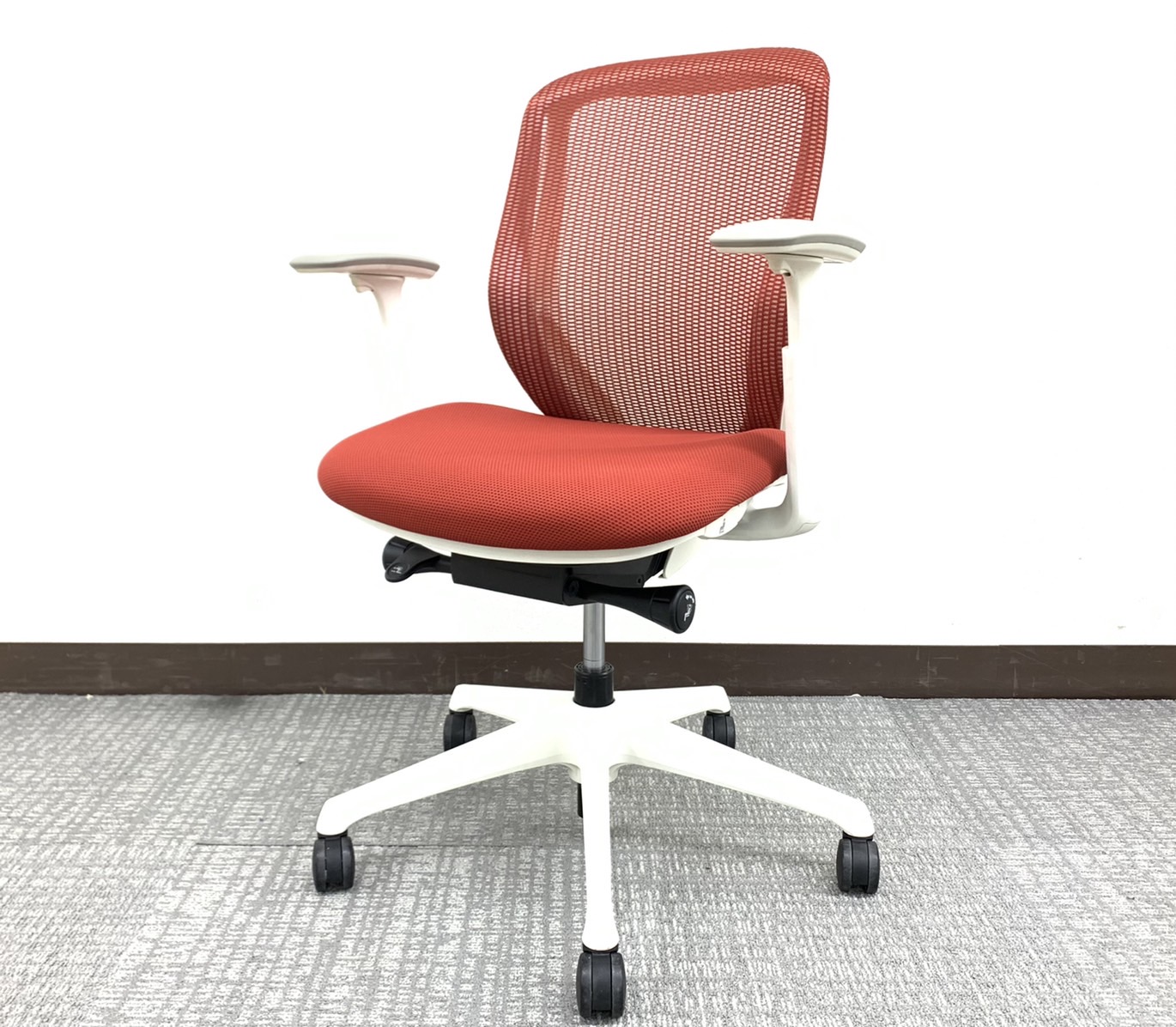 【稼働肘】【前傾機能付き】オカムラ/シルフィー/レッド/ホワイトフレーム コンパクトなローバックタイプです!オフィスの執務室などに如何でしょうか!サーキュラーバリューCO2削減量の算出について