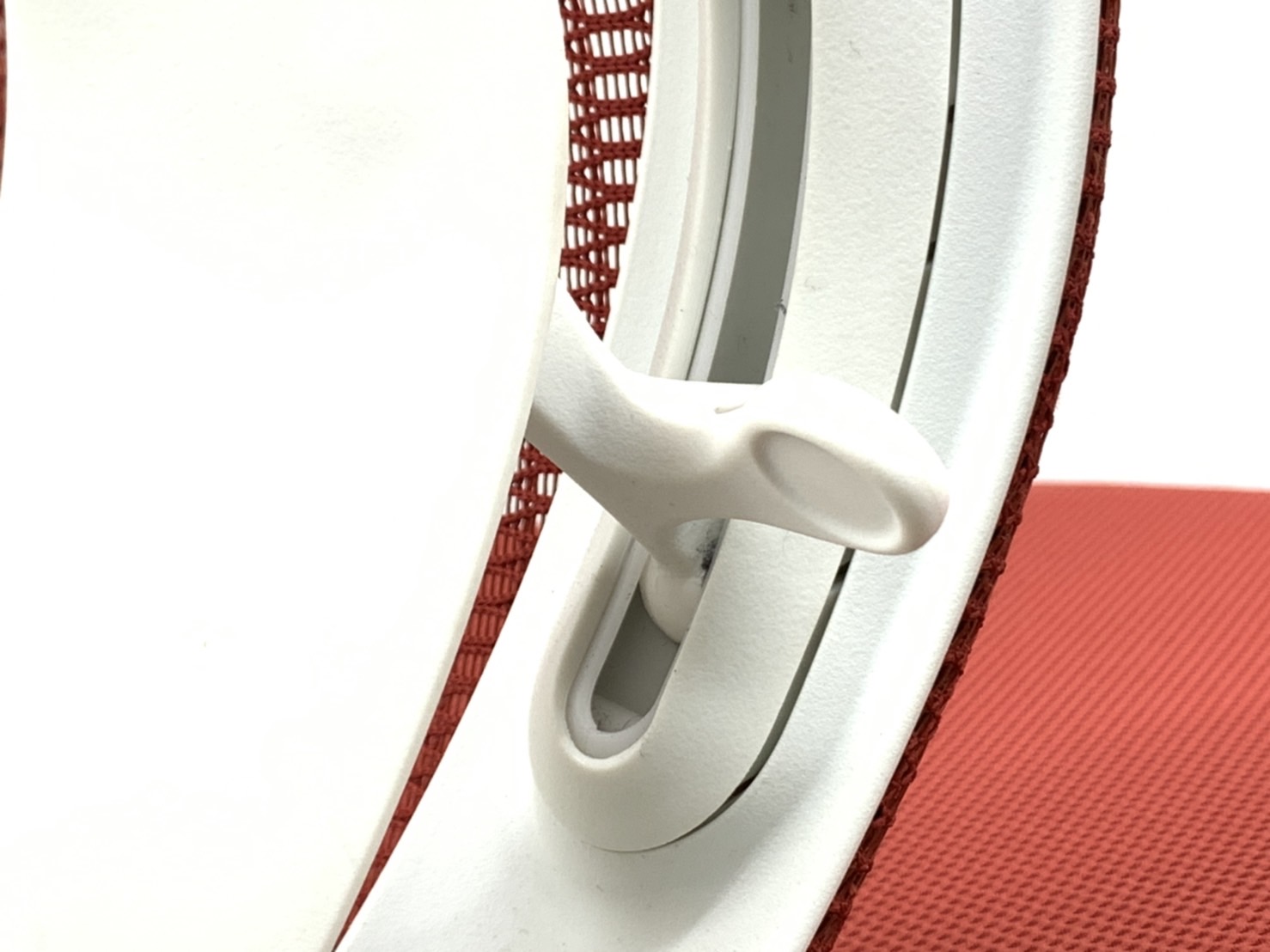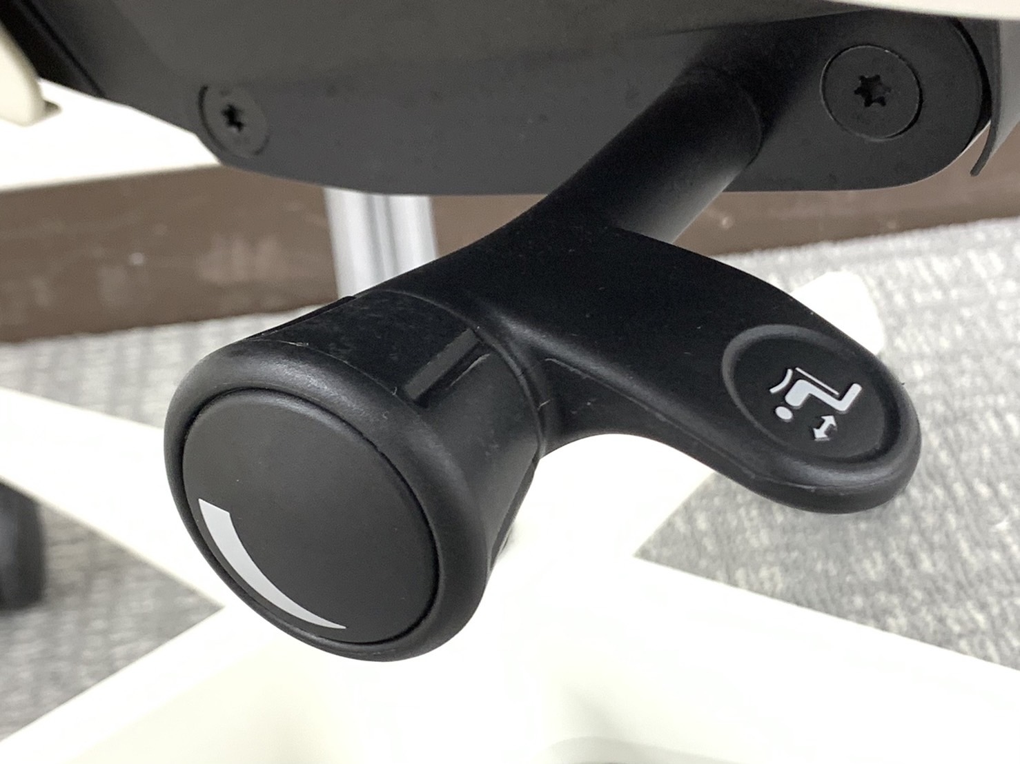 - 座面右下のダイヤル操作で、リクライニングの強弱調整が行えます。これまでのダイヤル式よりも、少ない回転数で、最弱?最強の調整が可能です。
