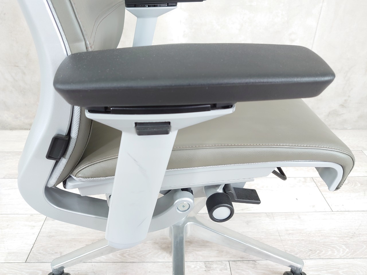快適な座り心地に不可欠な調節機能である、上下昇降、座面の奥行き調整、リクライニングなどを備えており、操作もわかりやすく好評です。 特に、座面の奥行きは、座面下の左右に通った細いバーで調整でき、座ったままで軽やかに滑るように調整が可能です。 価格面では、新品では高めですが、中古は流通も多く、定価の3割前後の価格で高級チェアの座り心地を手に入れることができます!