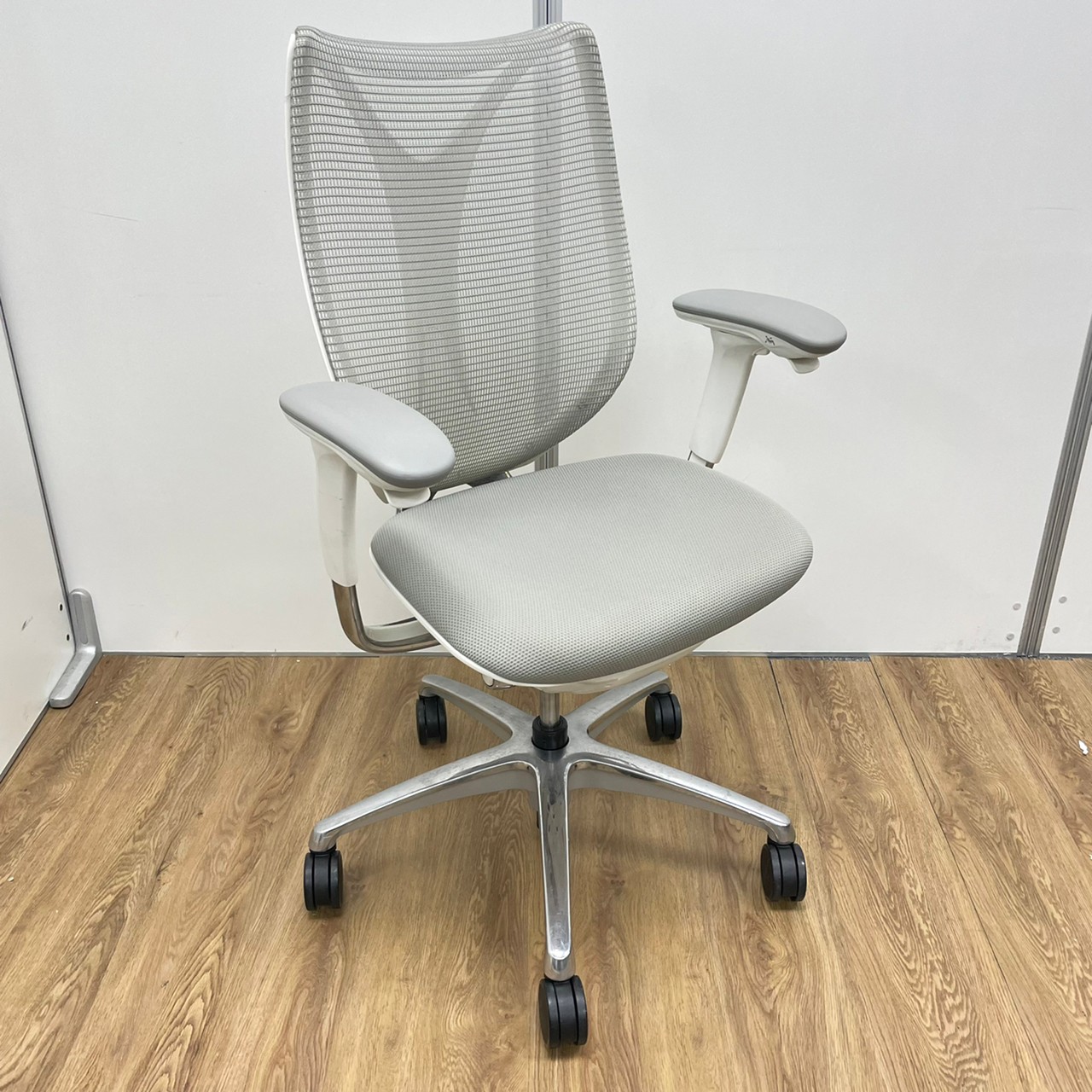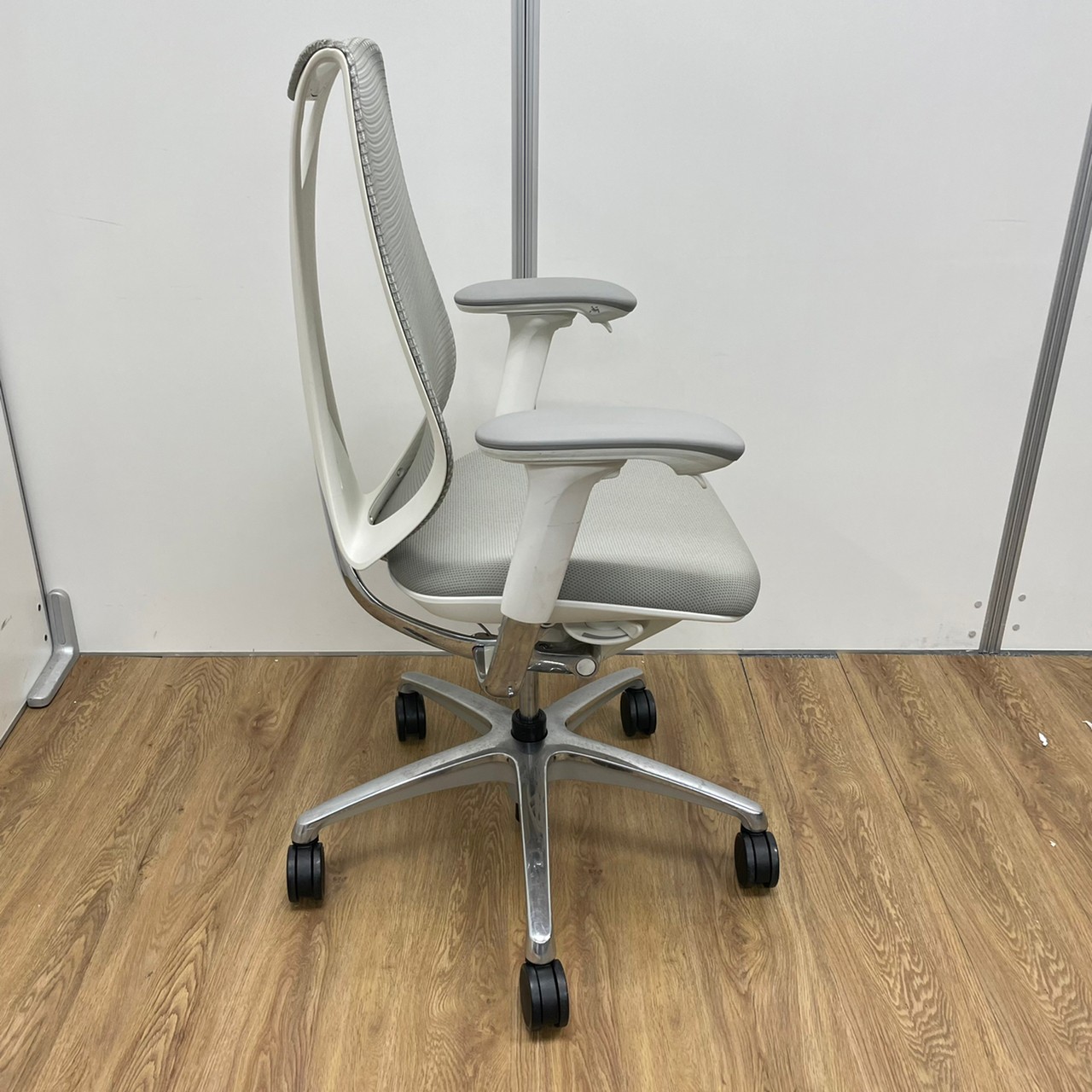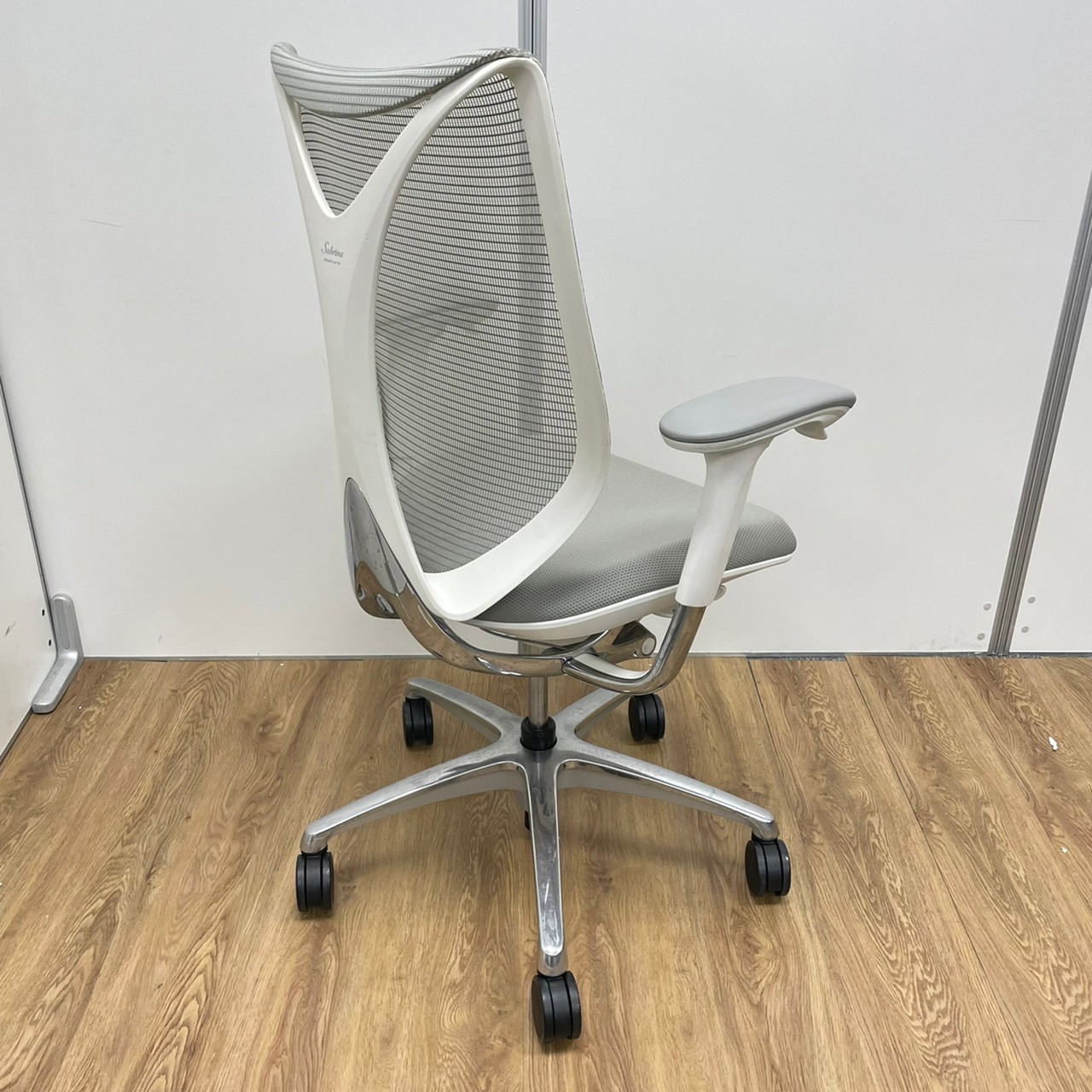 入替セール品につきお値下げ!【オカムラの高級チェアが6脚まとまって入荷!】オカムラ サブリナ ハイバック アジャストアーム ホワイトボディ アルミフレーム 背カラー:ライトグレー 座カラー:ライトグレー 【有名なシルフィーチェアと同じ前傾チルト機能が備わっています!】