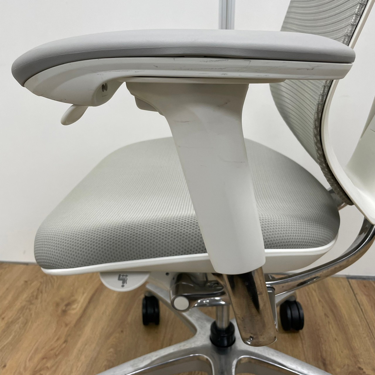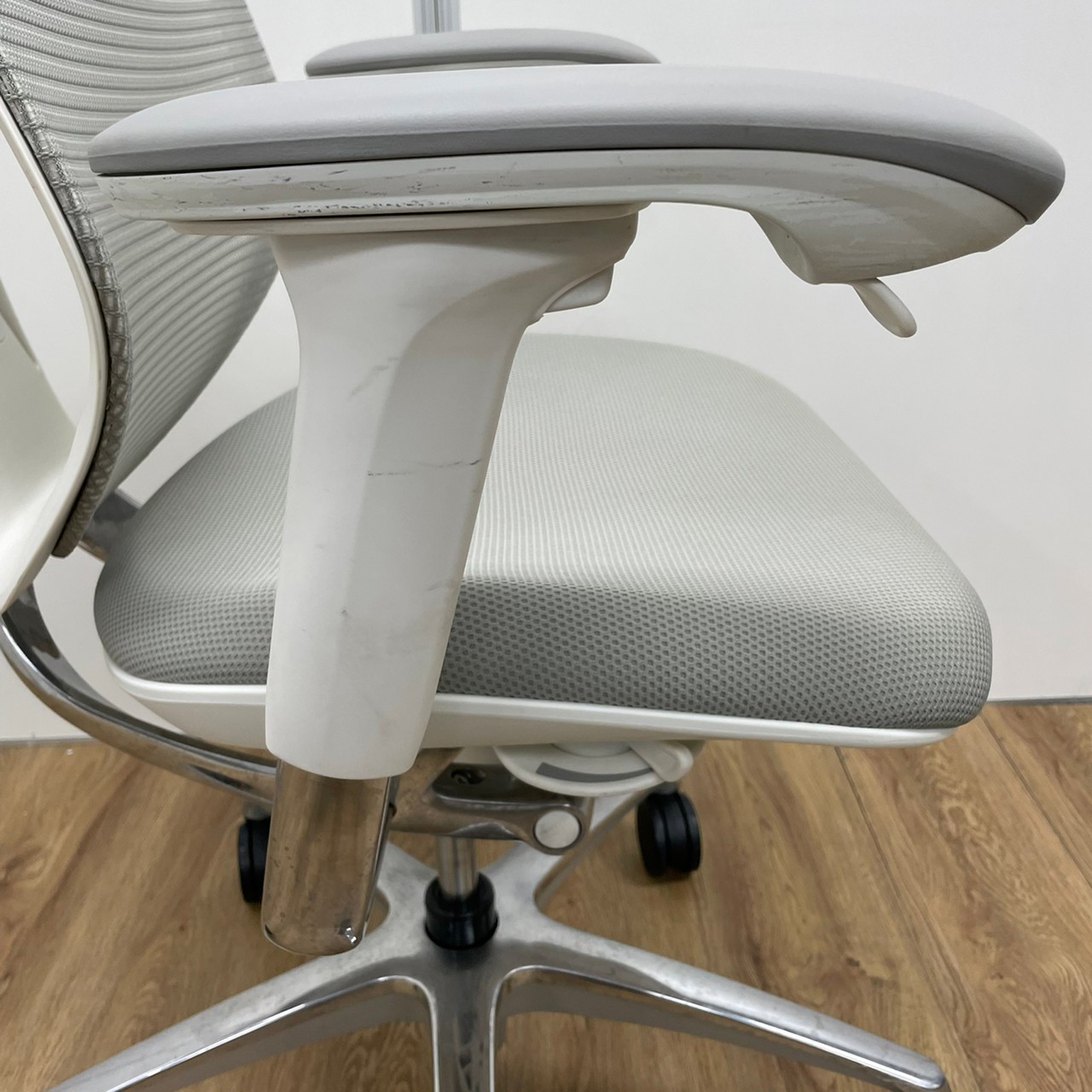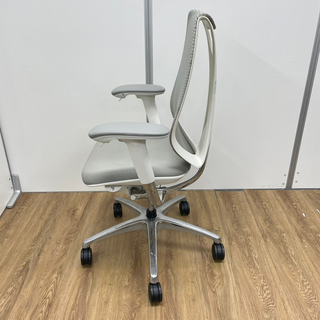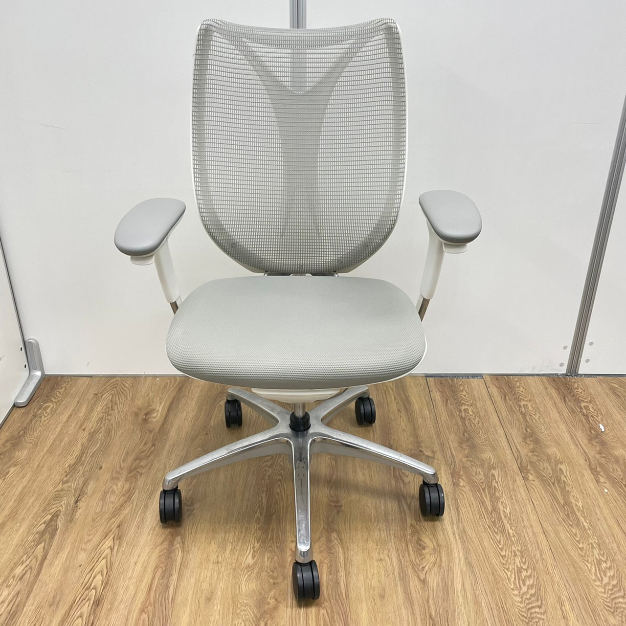 入替セール品につきお値下げ!【オカムラの高級チェアが6脚まとまって入荷!】オカムラ サブリナ ハイバック アジャストアーム ホワイトボディ アルミフレーム 背カラー:ライトグレー 座カラー:ライトグレー 【有名なシルフィーチェアと同じ前傾チルト機能が備わっています!】