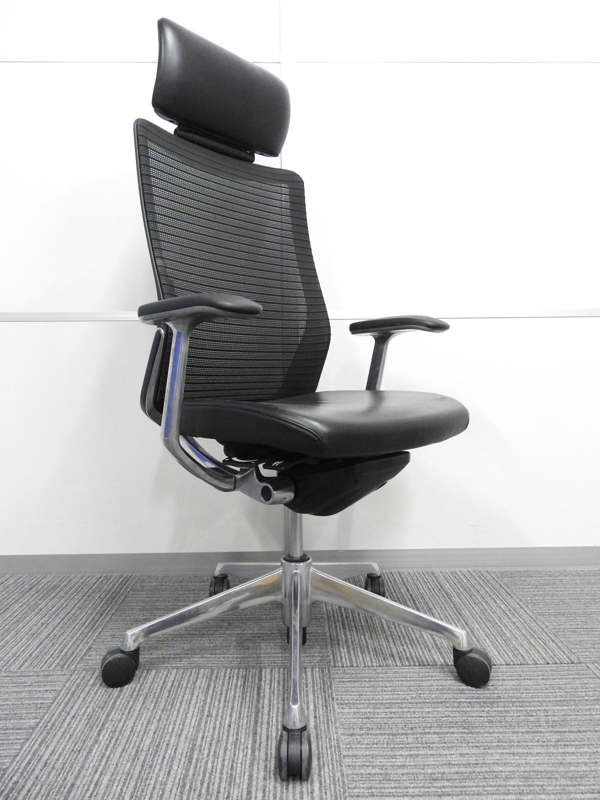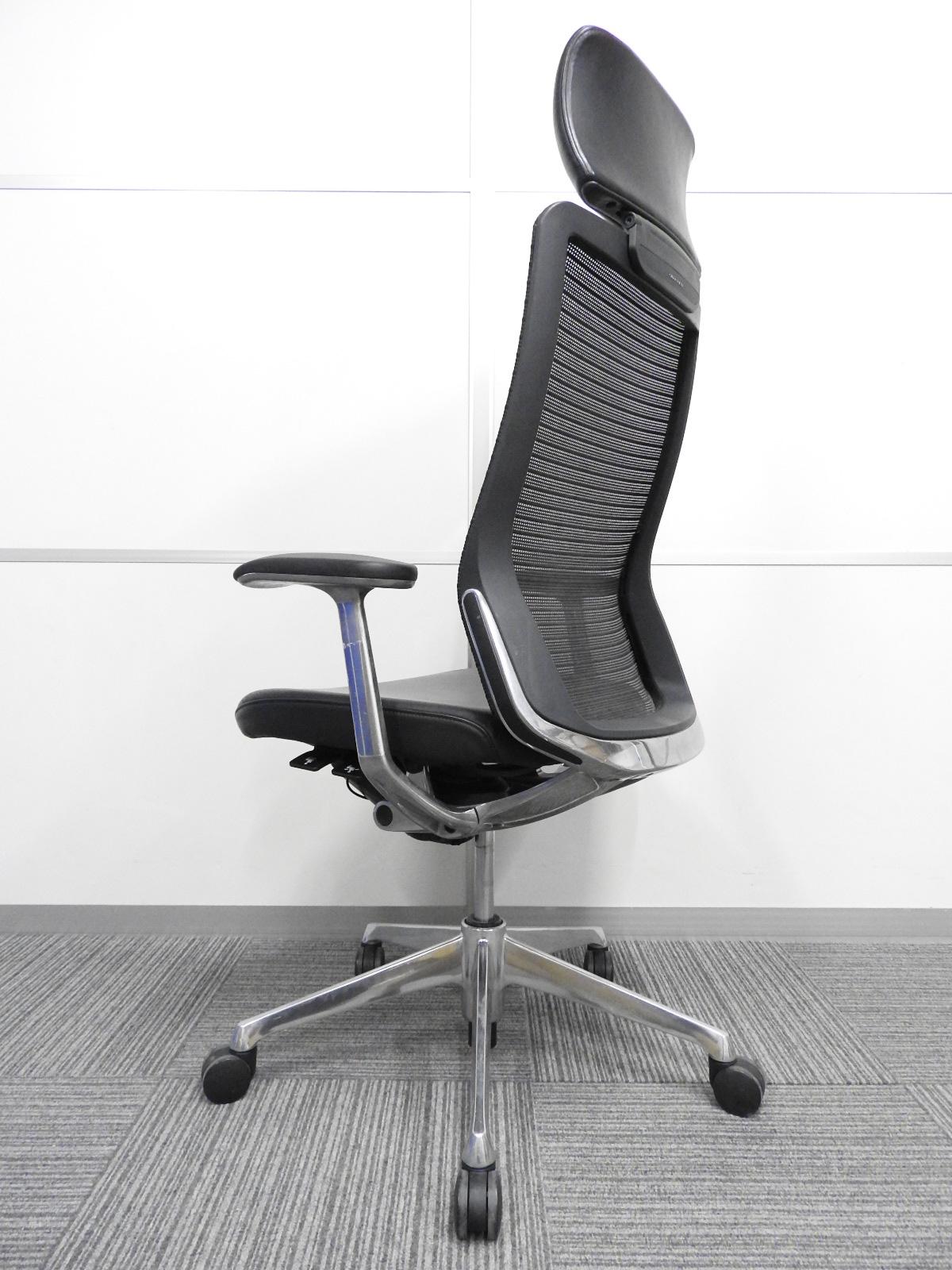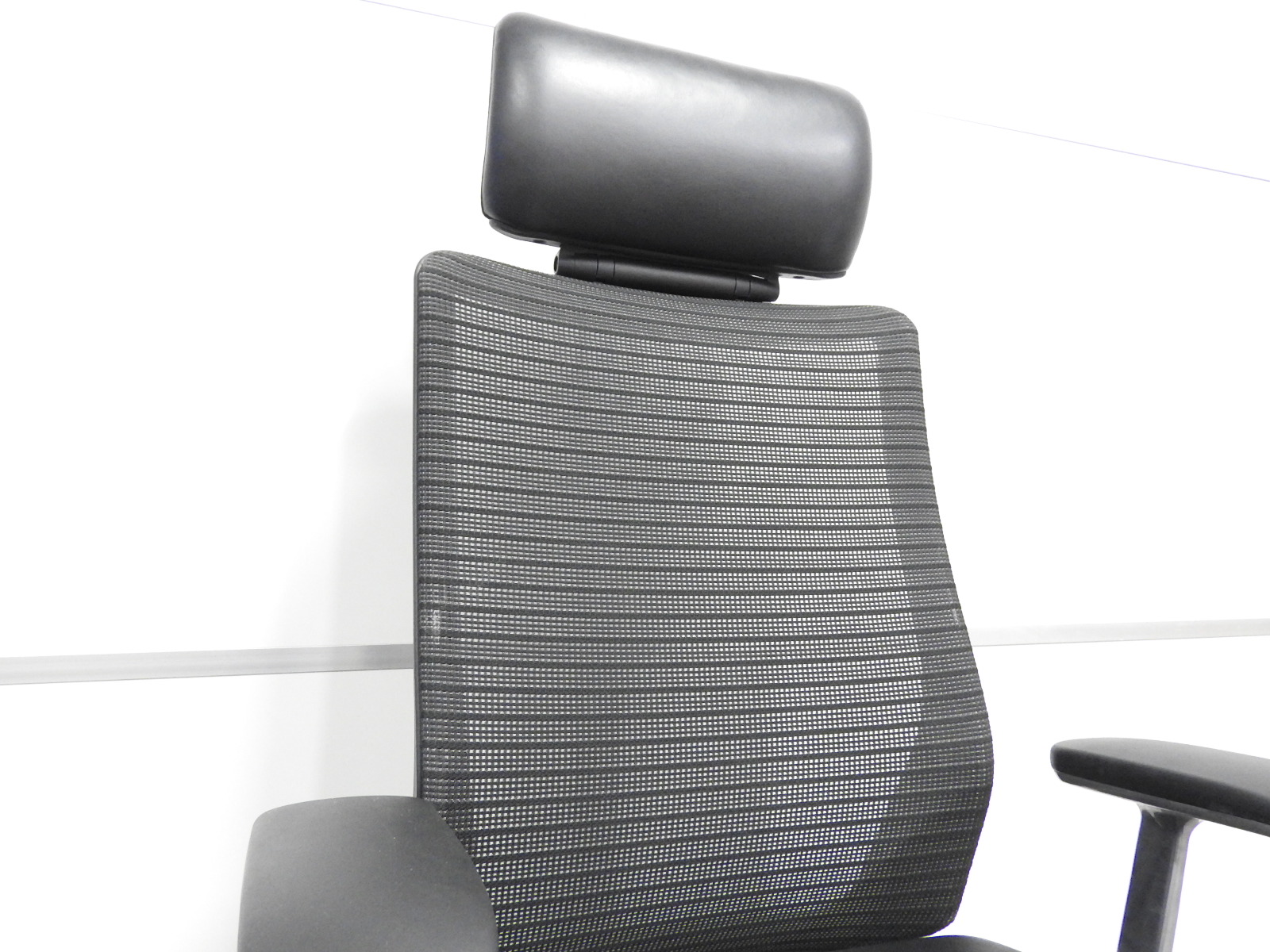 【美しいデザインの快適メッシュ!】◆オカムラ製 コーラルチェア デザインアーム・ヘッドレスト付 ブラック- 川崎店