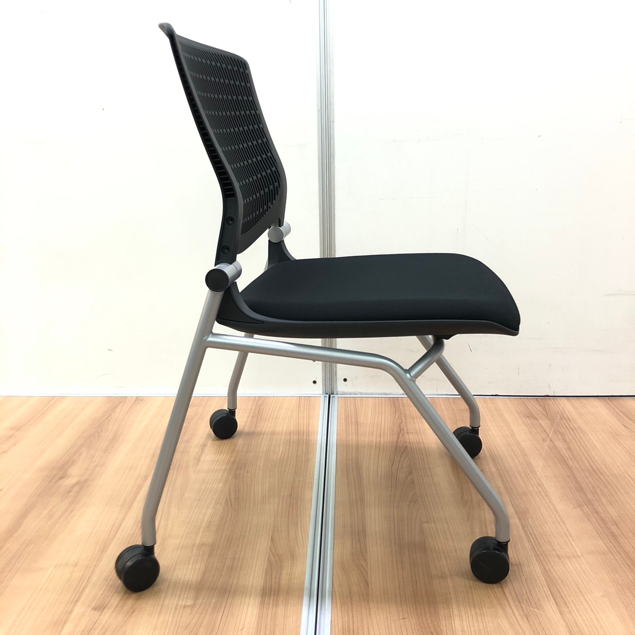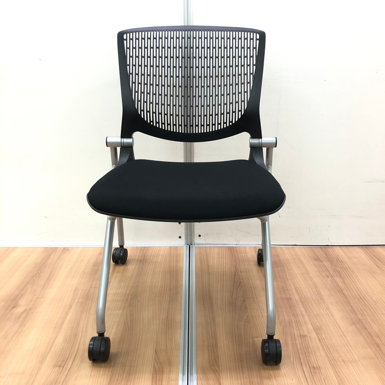 【会議用チェアを代表するオカムラのグラータシリーズ!】会議室などにおすすめです!キャスター付きで収納面も優れているネスティングチェア! ブラックカラー- 東大阪店