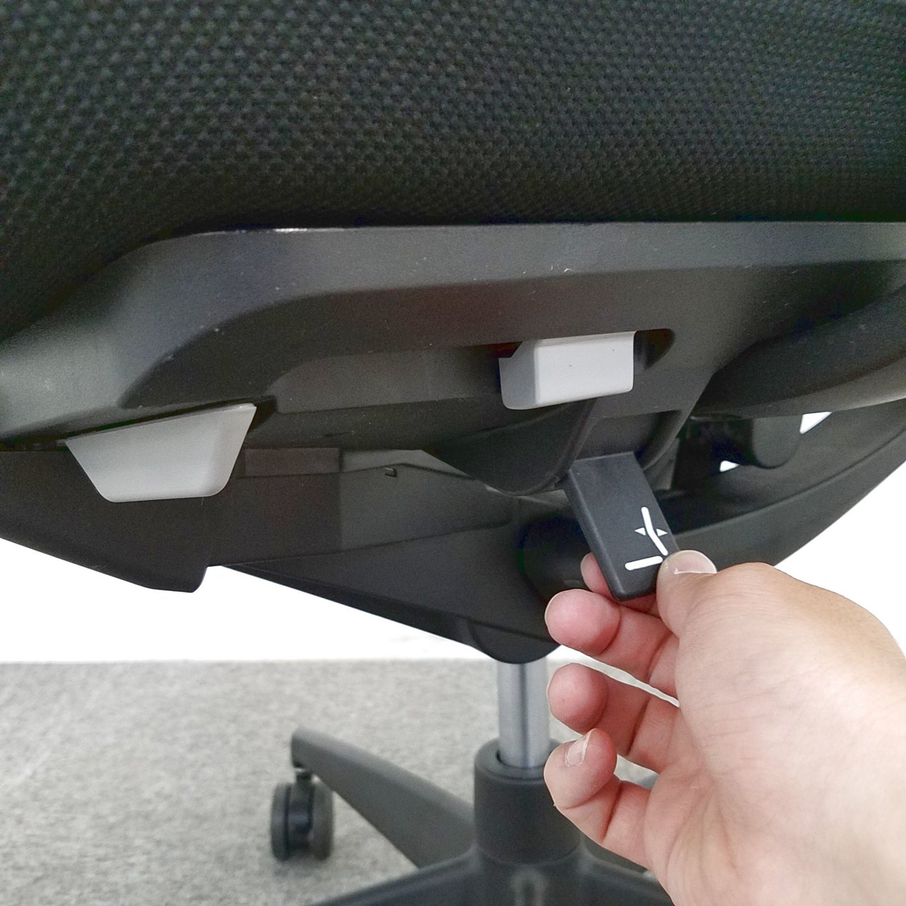 座面左前側のレバーを操作することで、前縁が20mm前傾した状態と、通常位置の選択ができます。