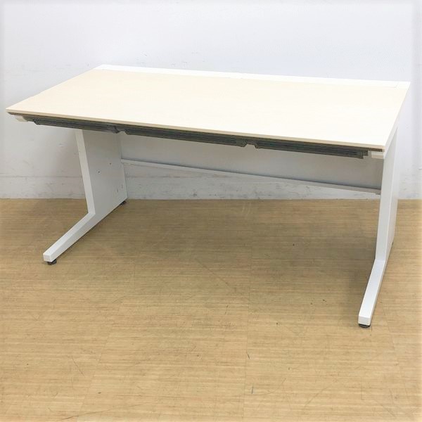【ワークスペース広々!足元ゆったりの幅1400㎜タイプ!】■コクヨ(KOKUYO)製 isシリーズ(アイエス) 平机 幅1400㎜ 引き出し無し ■天板:木目ナチュラル 本体:ホワイト オフィスバスターズ東大阪店